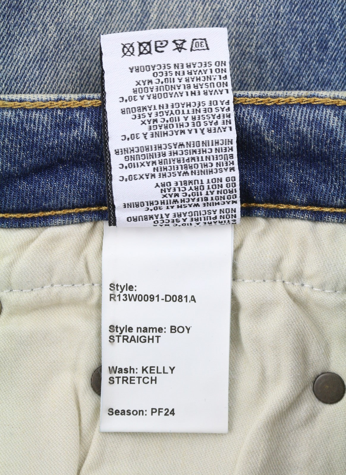 R13 Boy Straight Women Jeans 24 Kelly Stretch Whiskers Faded Cropped RRP699