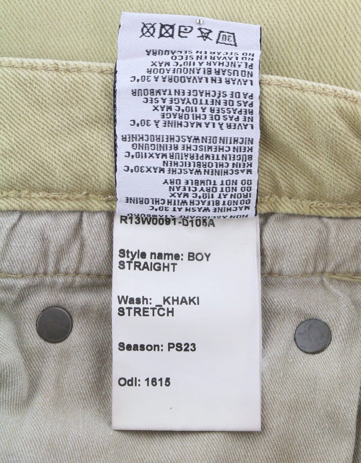 R13 Boy Straight Women Jeans 24 Khaki Stretchy Faded Ankle Length Casual RRP€699