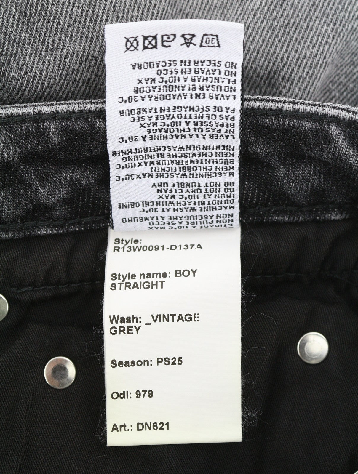 R13 Boy Straight Women Jeans 24 Vintage Grey Faded Cropped Ankle PS25 RRP599
