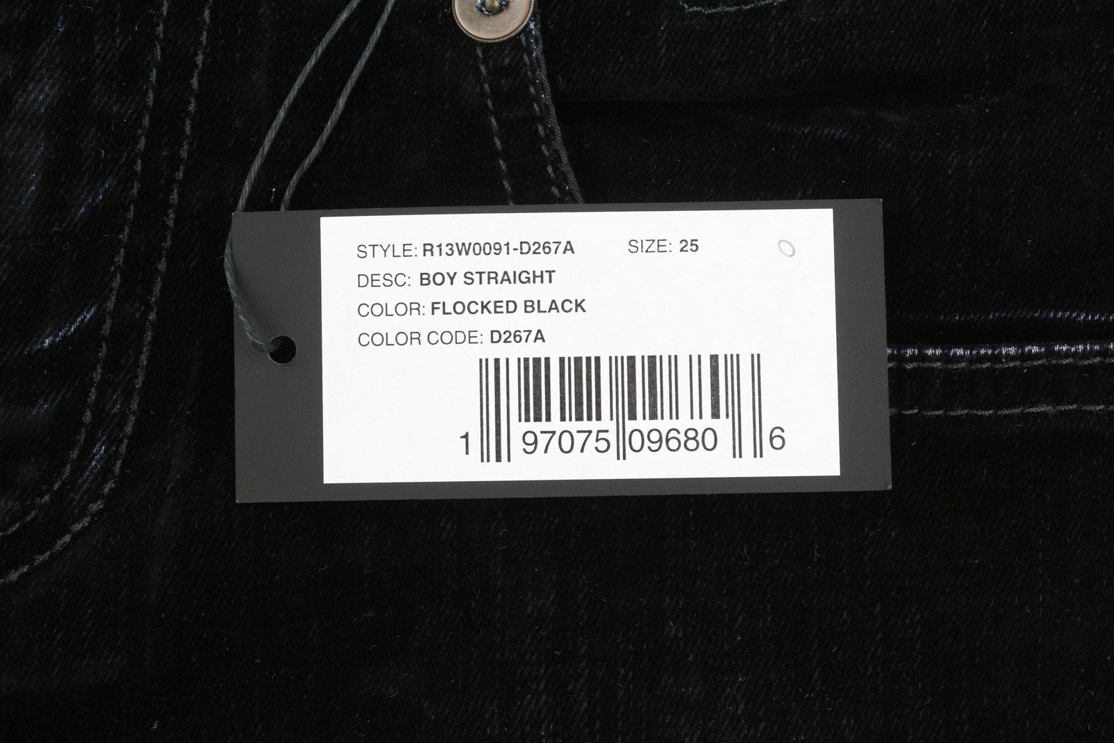 R13 Boy Straight Women Jeans 25 Flocked Black Velvet Cropped Ankle Length Dark