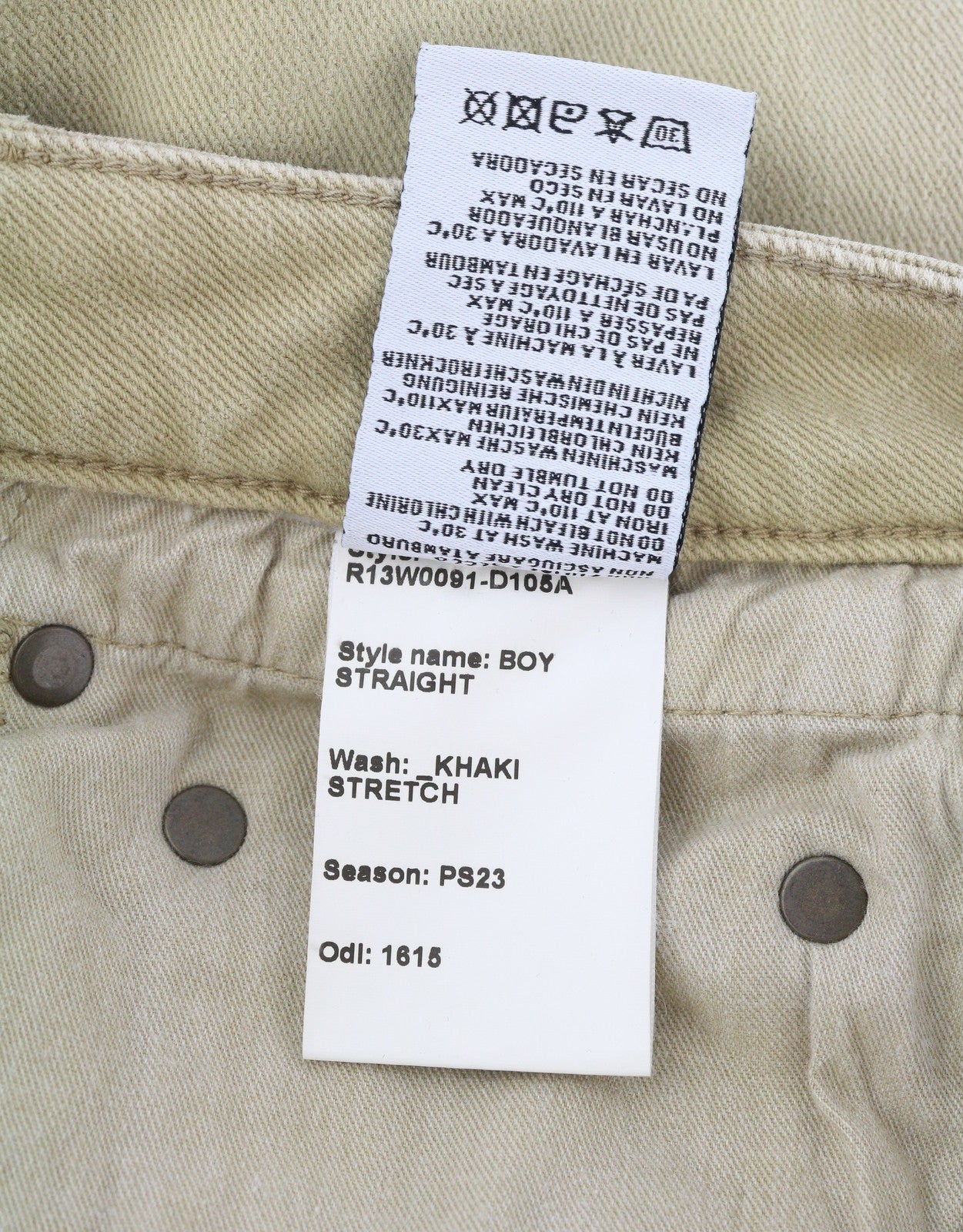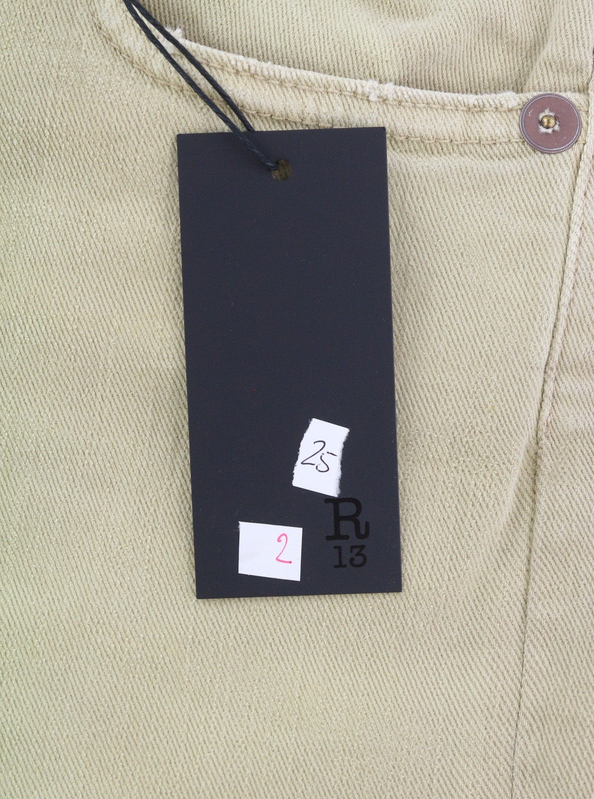 R13 Boy Straight Women Jeans 25 Khaki Stretch Washed Cropped Ankle Zip RRP€699
