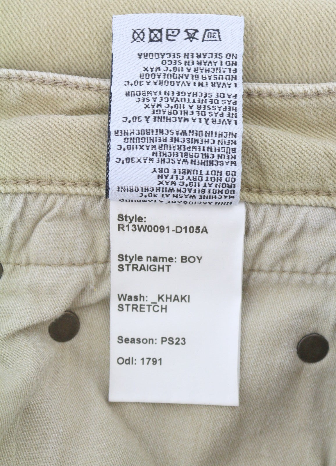 R13 Boy Straight Women Jeans 25 Khaki Stretchy Washed Cropped Ankled RRP€699