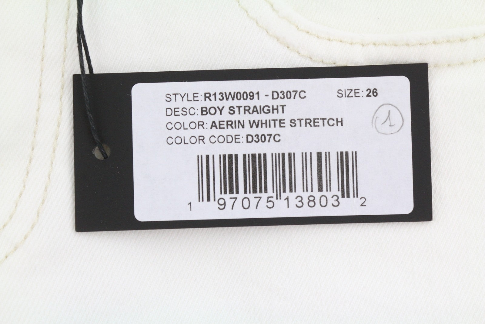R13 Boy Straight Women Jeans 26 Aerin White Stretch Distress Cropped RRP720