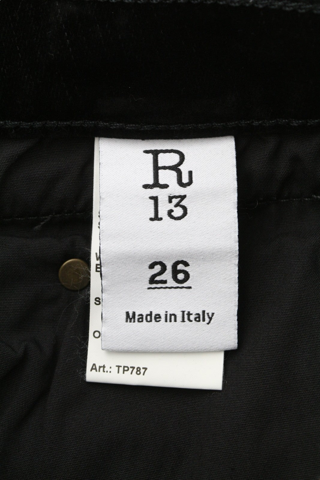 R13 Boy Straight Women Jeans 26 Black Velvet Flocked Cropped Ankle Dark