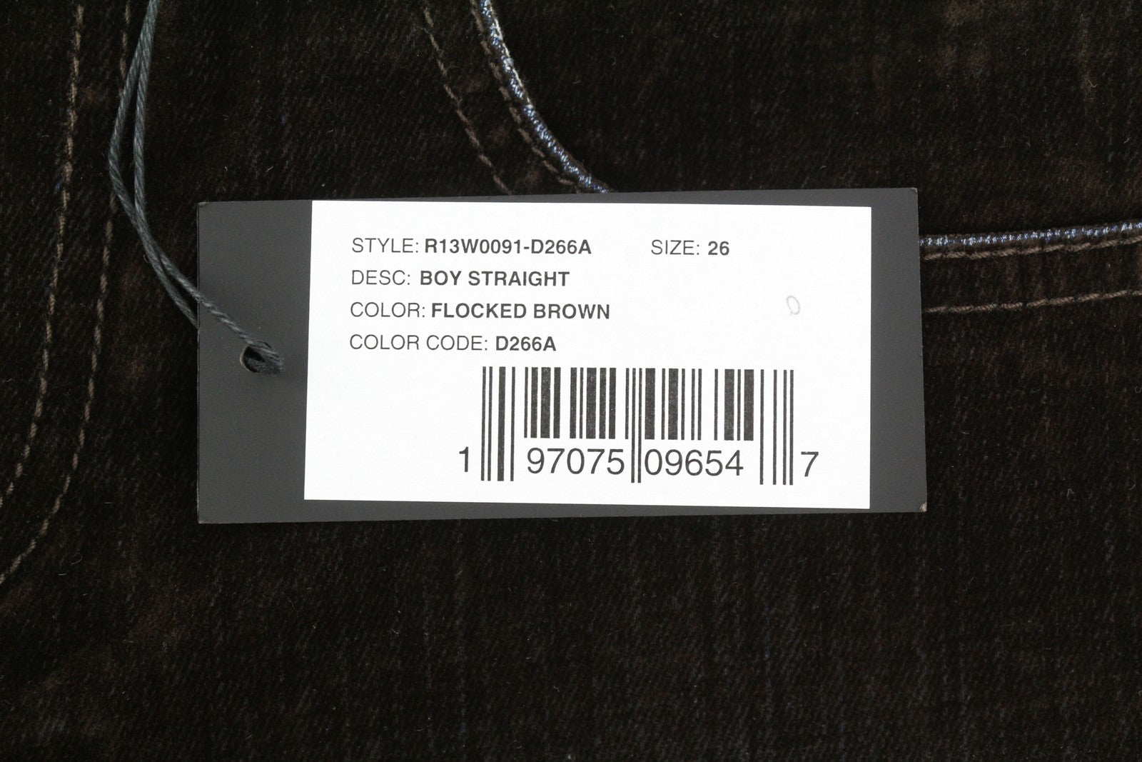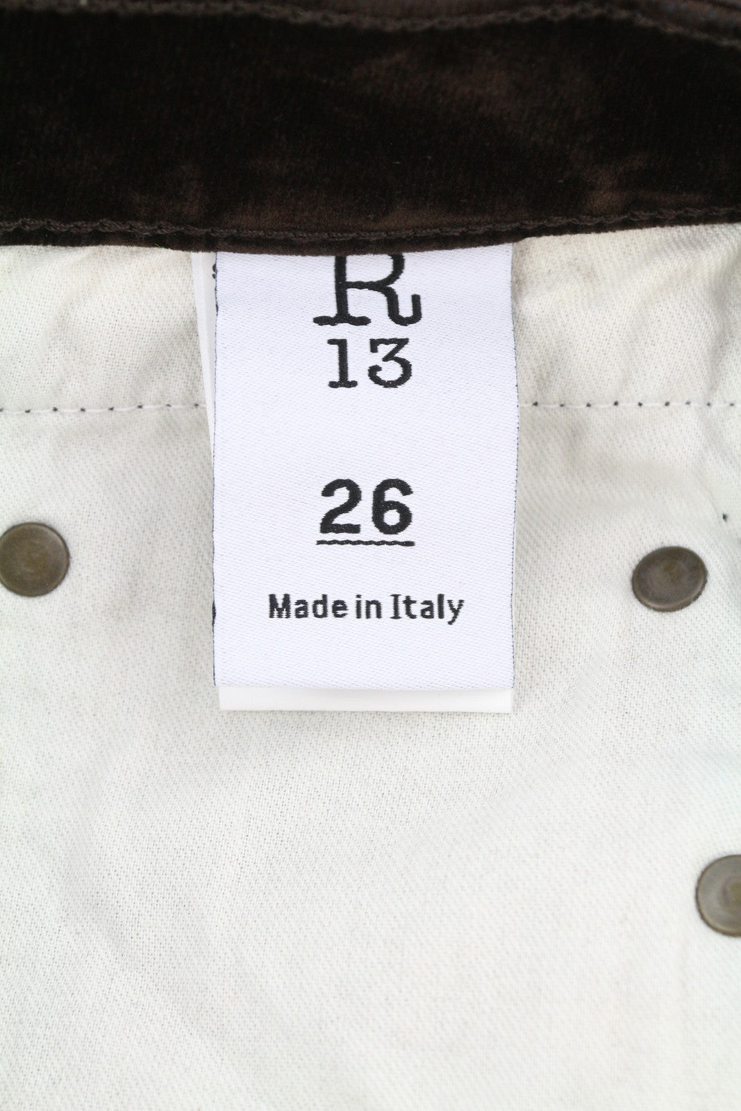 R13 Boy Straight Women Jeans 26 Brown Velvet Flocked Cropped Ankle Dark