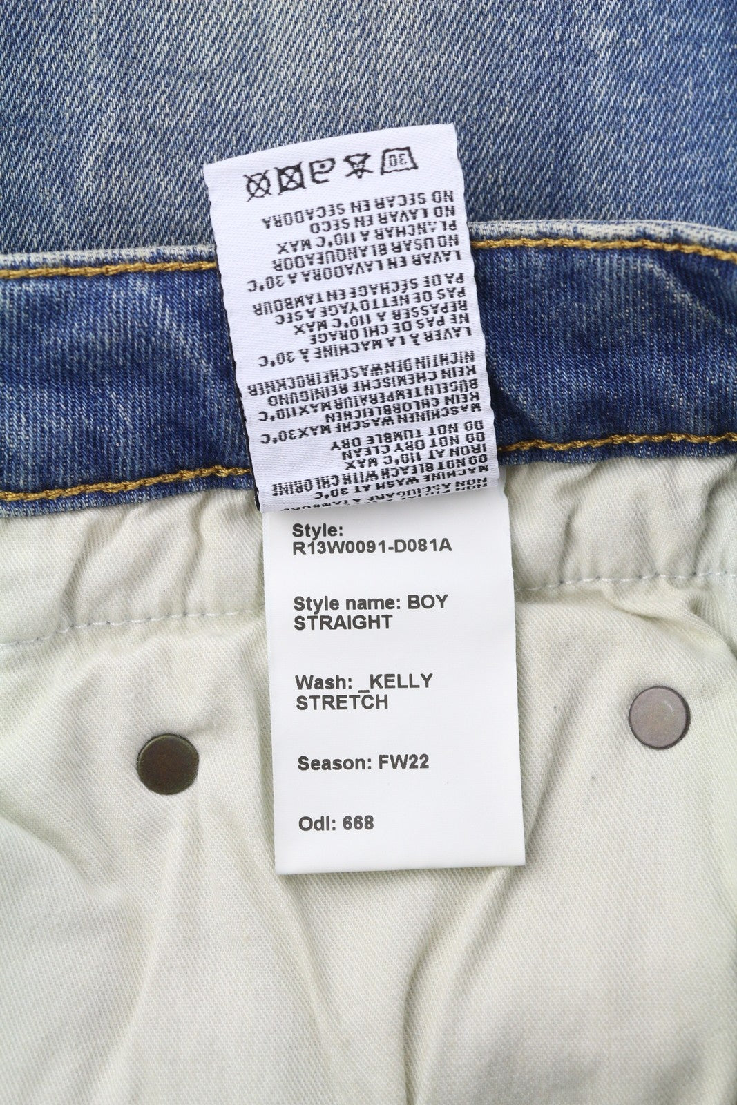 R13 Boy Straight Women Jeans 26 Kelly Stretch Ankle Washed Faded Blue RRP€645