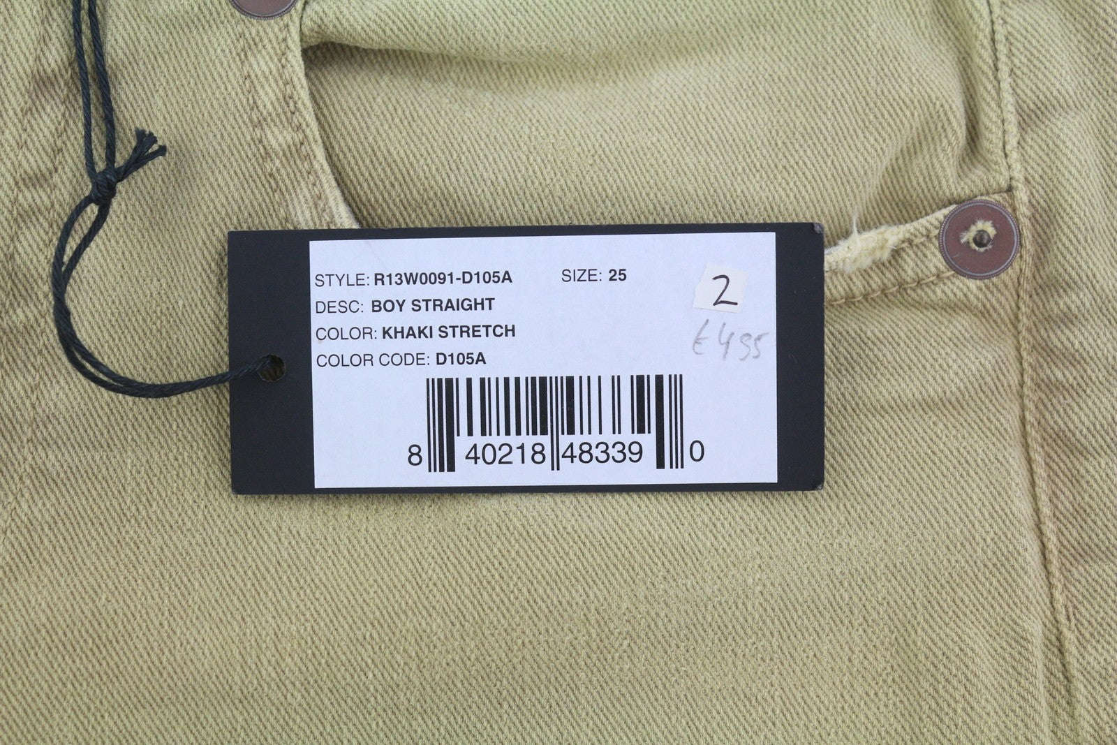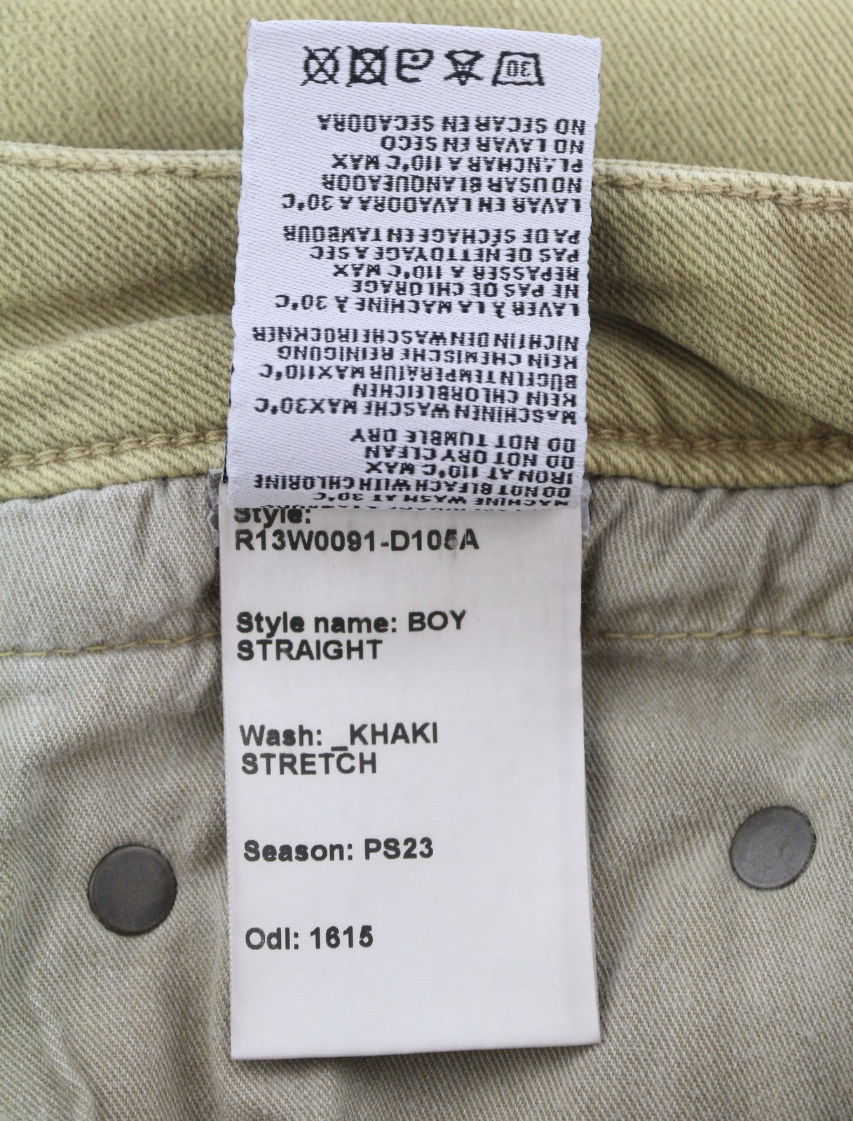R13 Boy Straight Women Jeans 26 Khaki Stretch Washed Logo Ankle RRP699