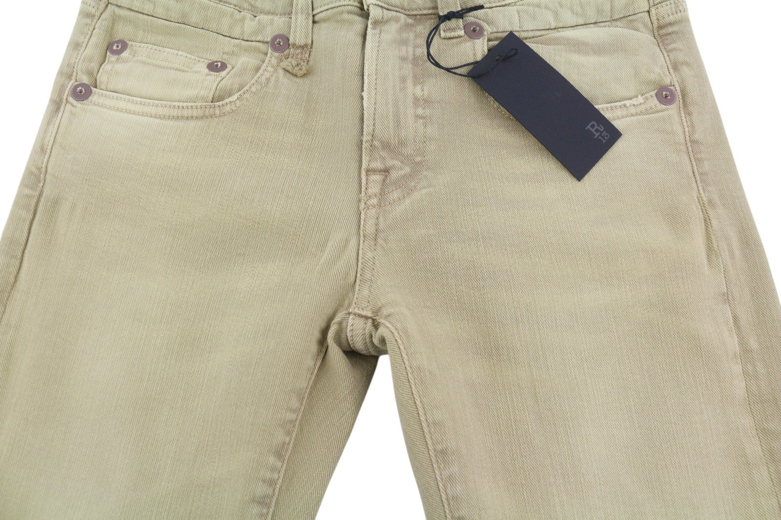 R13 Boy Straight Women Jeans 26 Khaki Stretchy Faded Ankle Length Casual RRP€699