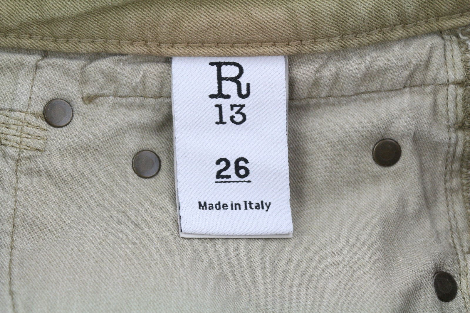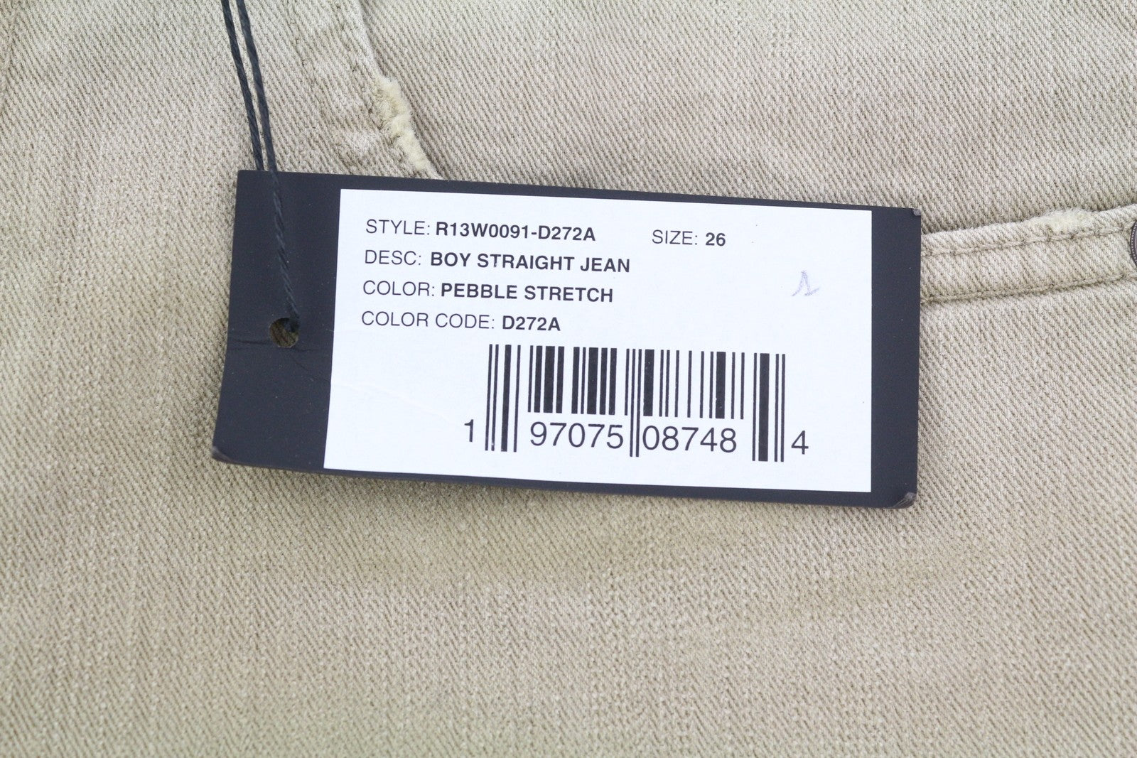 R13 Boy Straight Women Jeans 26 Pebble Stretch Ankle Cropped Faded Brown RRP€695