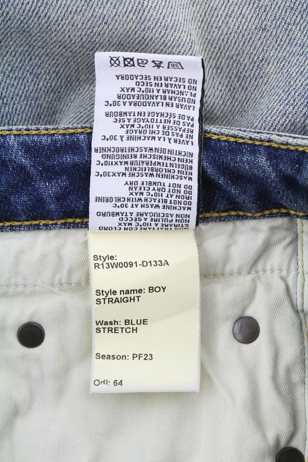 R13 Boy Straight Women Jeans 27 Blue Stretch Faded Distress Ankle Cropped Denim