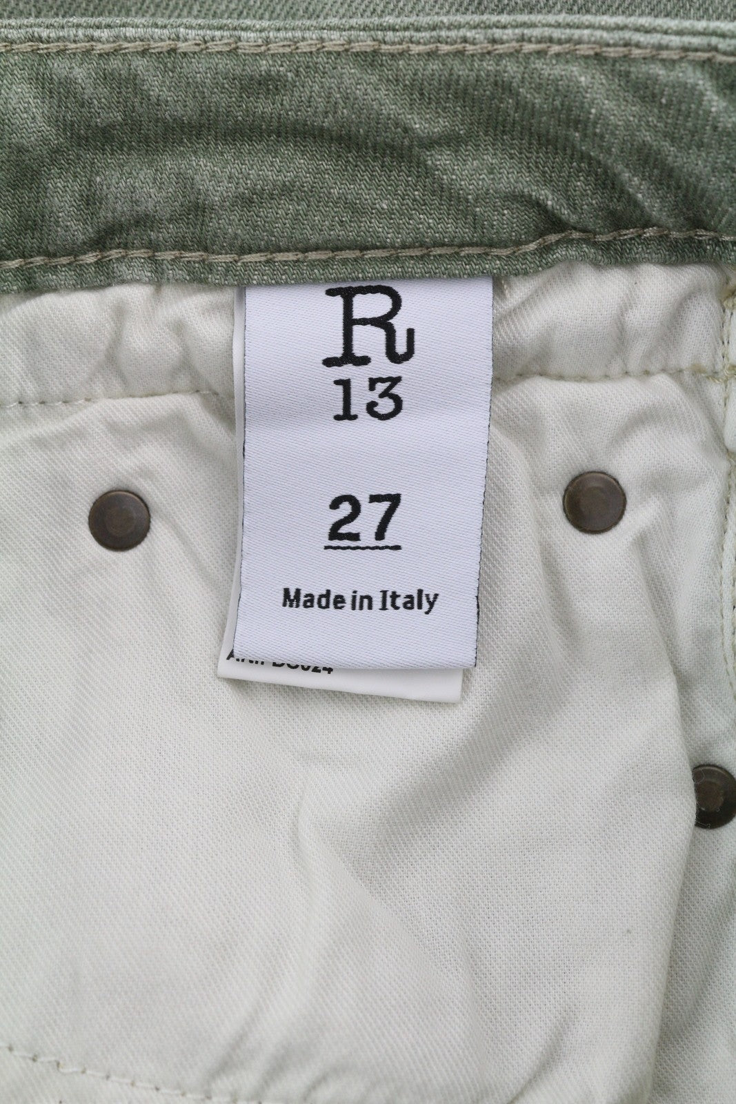 R13 Boy Straight Women Jeans 27 Slim Straight Cropped Army Green Stretch RRP€695
