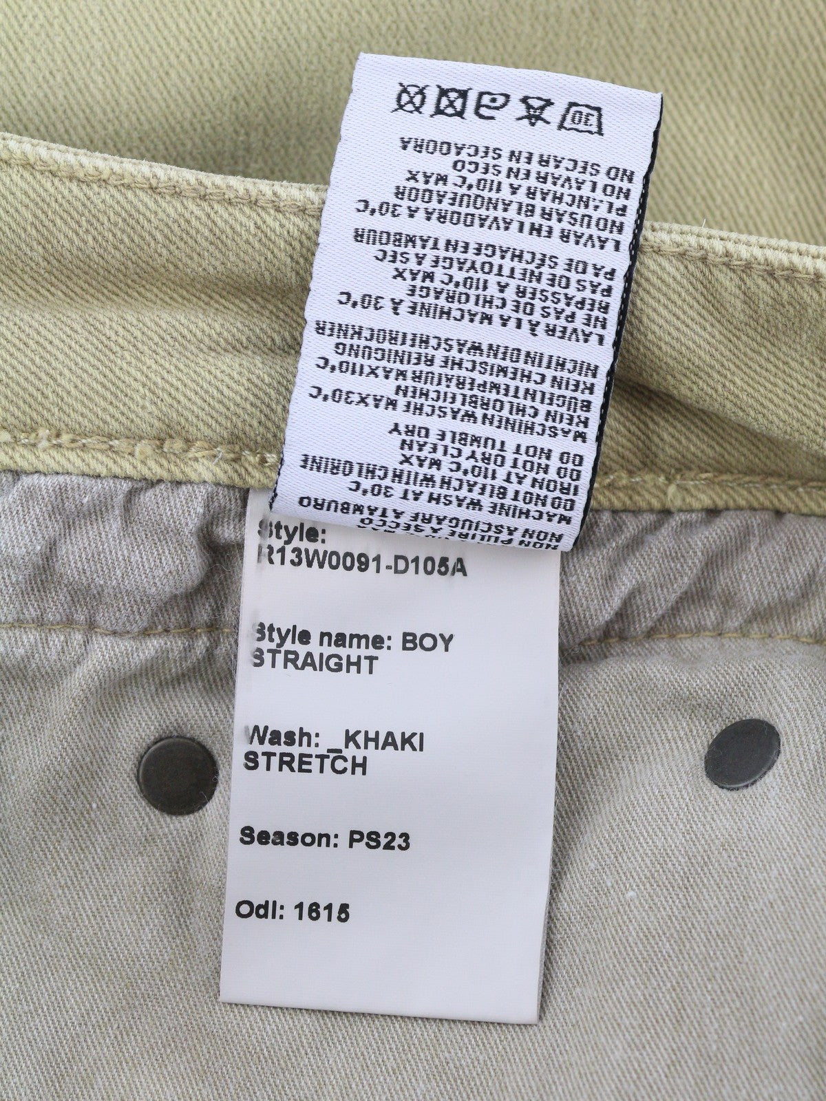 R13 Boy Straight Women Jeans 28 Khaki Stretch Denim Cropped Pocket RRP699