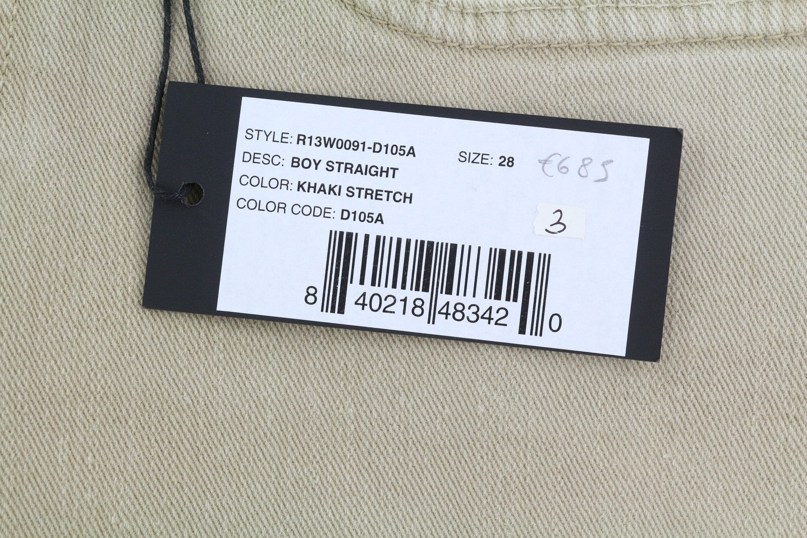 R13 Boy Straight Women Jeans 28 Khaki Stretch Faded Cropped Ankle Length RRP€699