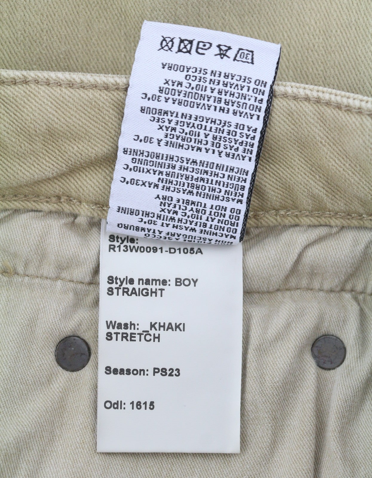 R13 Boy Straight Women Jeans 28 Khaki Stretch Faded Cropped Ankle Zip RRP699