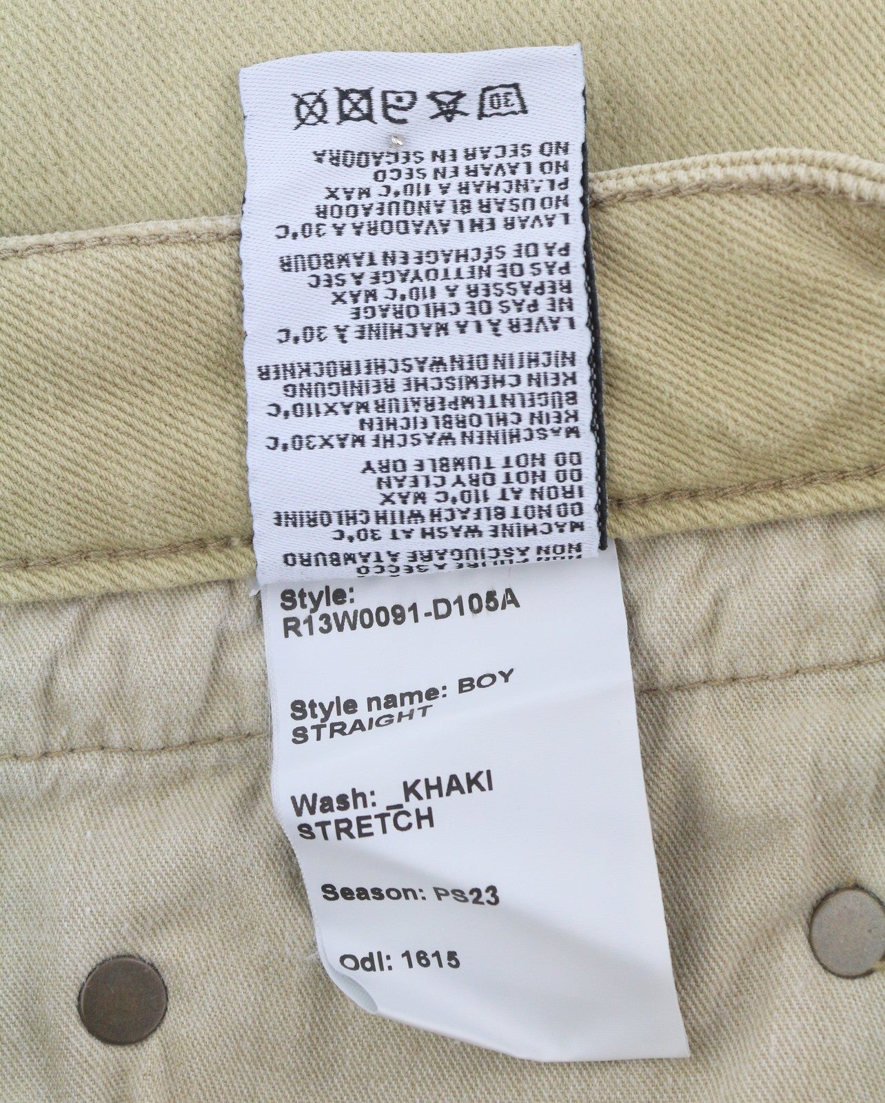 R13 Boy Straight Women Jeans 29 Khaki Stretch Faded Casual Ankle RRP699