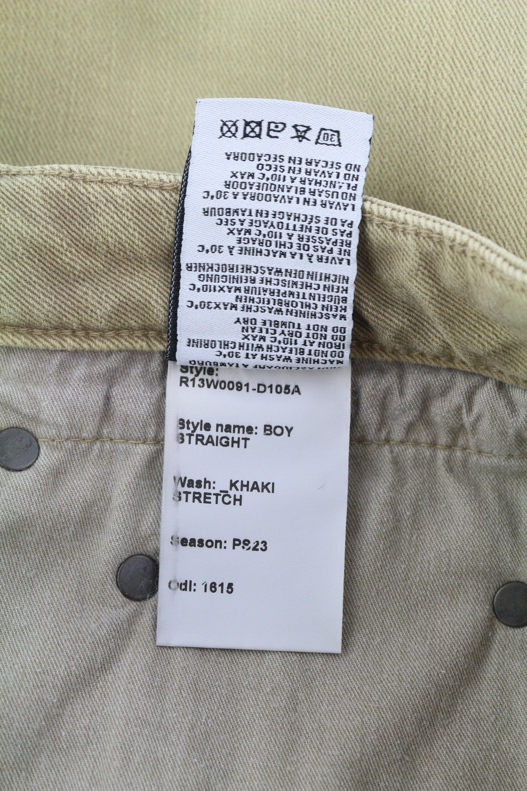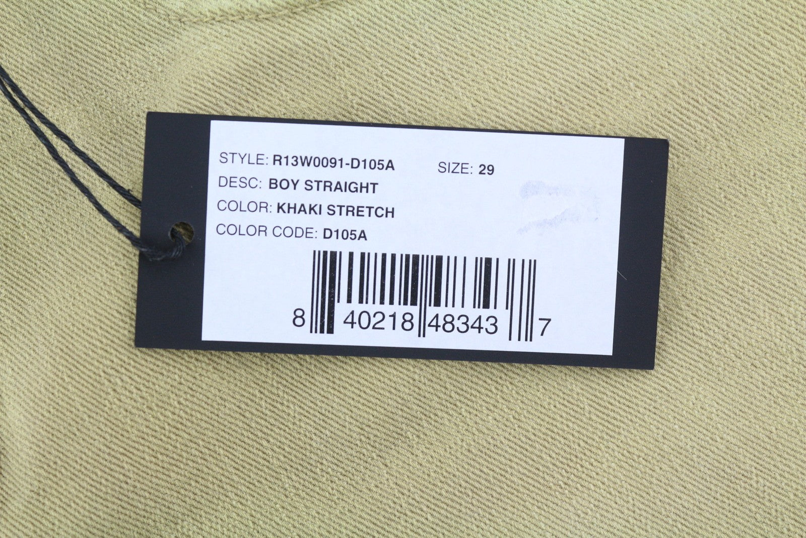R13 Boy Straight Women Jeans 29 Washed Khaki Stretch Ankle Length Denim RRP€645