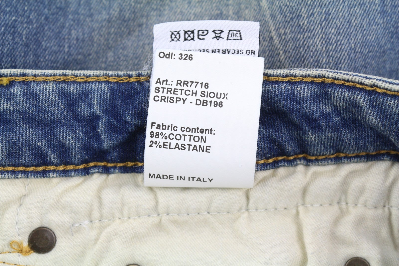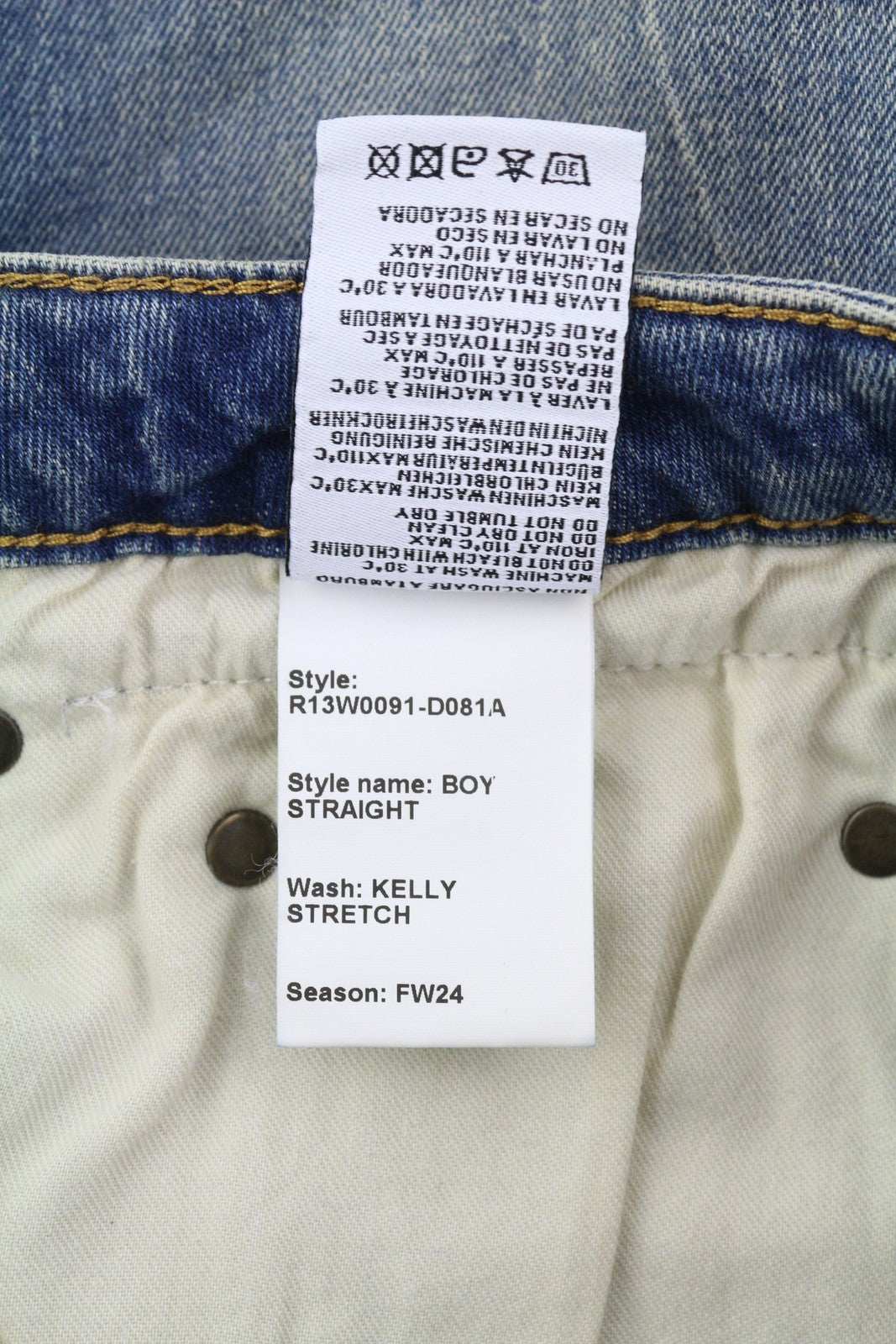 R13 Boy Straight Women Jeans 30 Cropped Ankle Washed Blue Kelly Stretch RRP€645