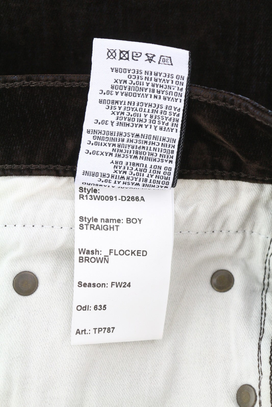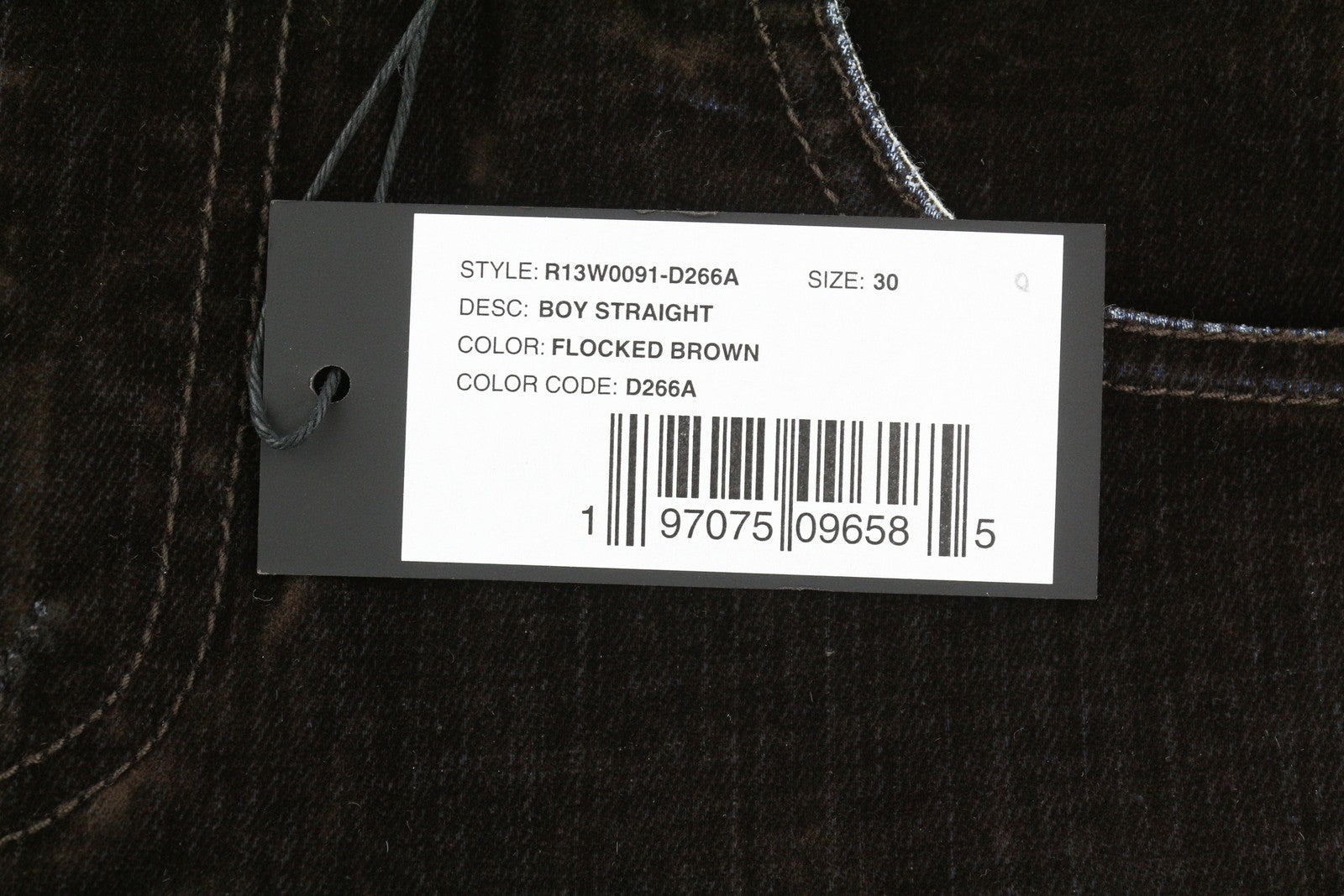 R13 Boy Straight Women Jeans 30 Flocked Brown Velvet Cropped Ankle Low Rise