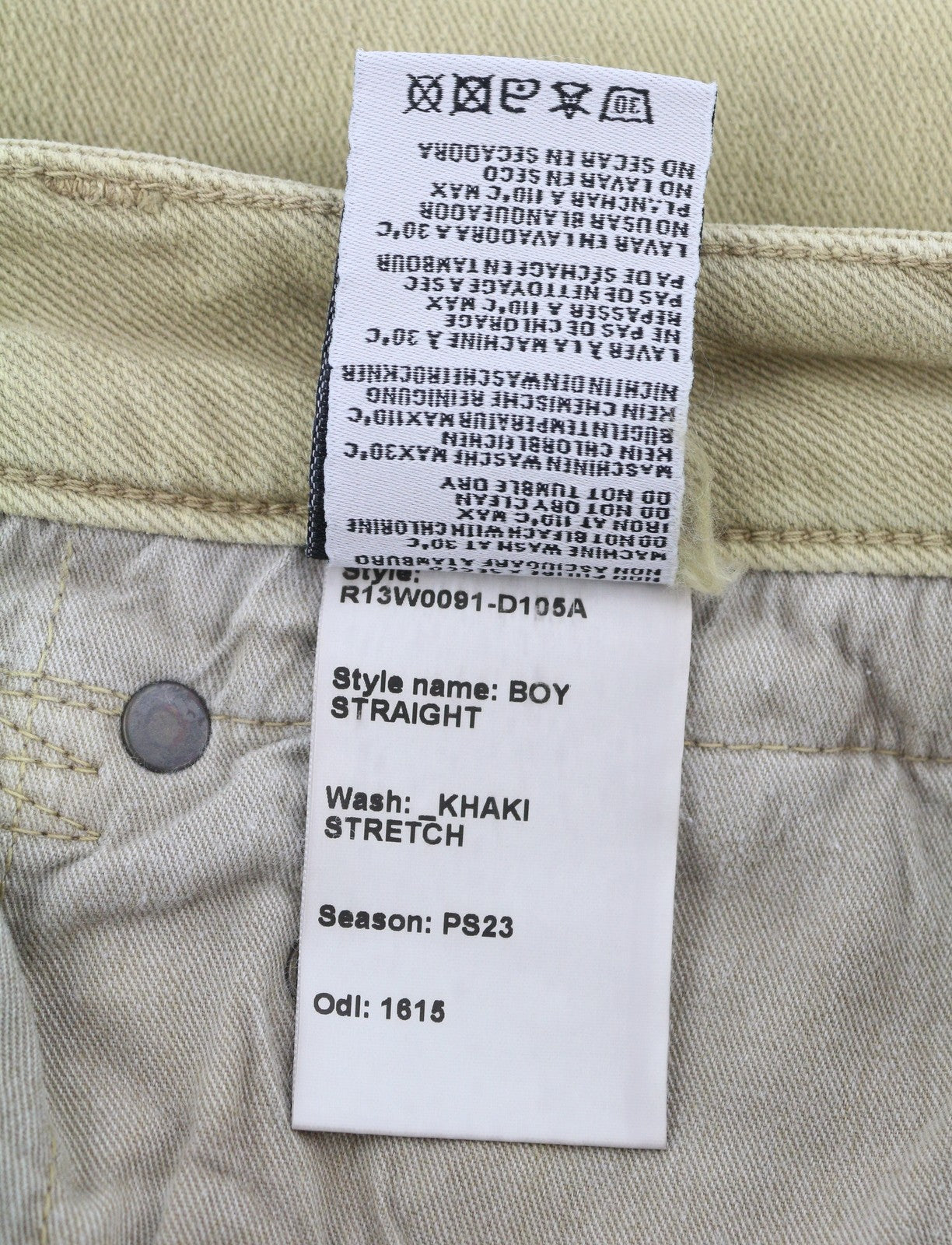 R13 Boy Straight Women Jeans 31 Khaki Stretch Faded Cropped Ankle RRP699