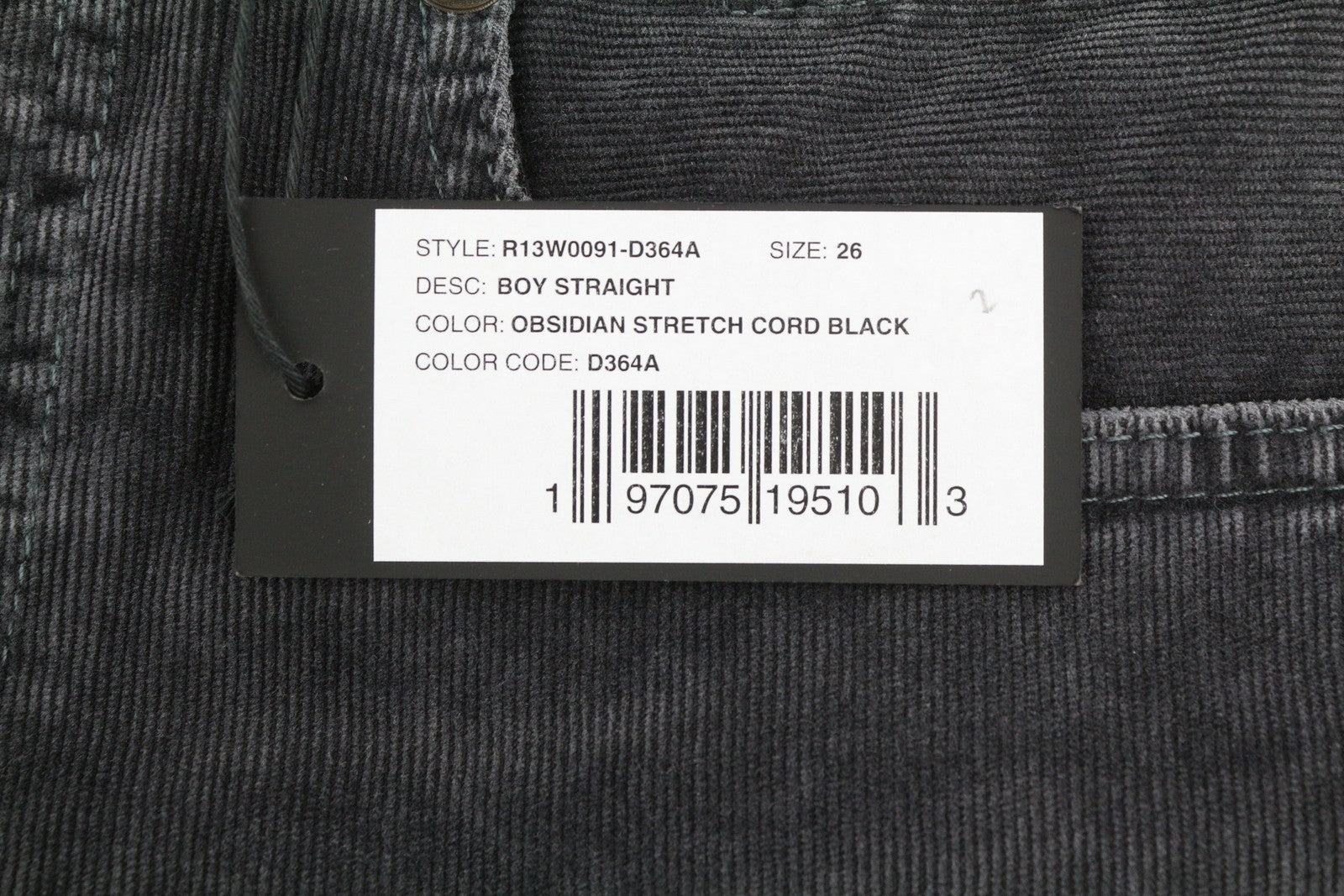 R13 Boy Straight Women Trousers 26 Obsidian Stretch Cord Cropped Faded FW25