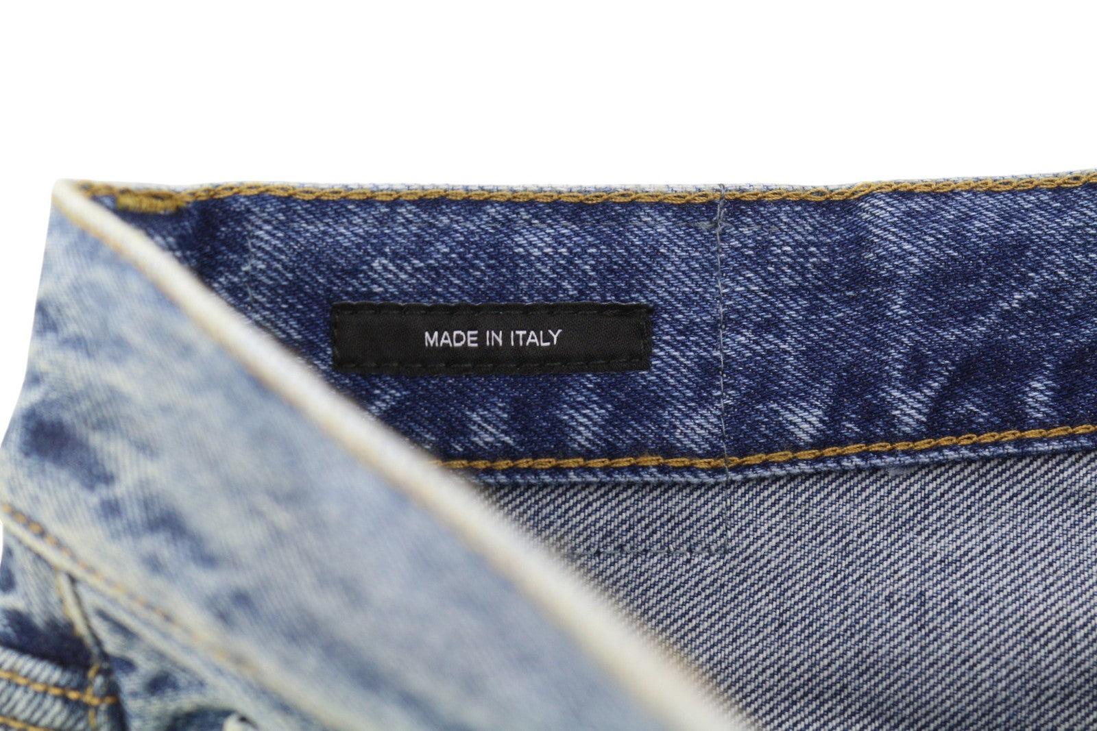 R13 Boyfriend Women Jeans 23 Jasper Whiskers Faded Cropped Zip Blue Denim PF25