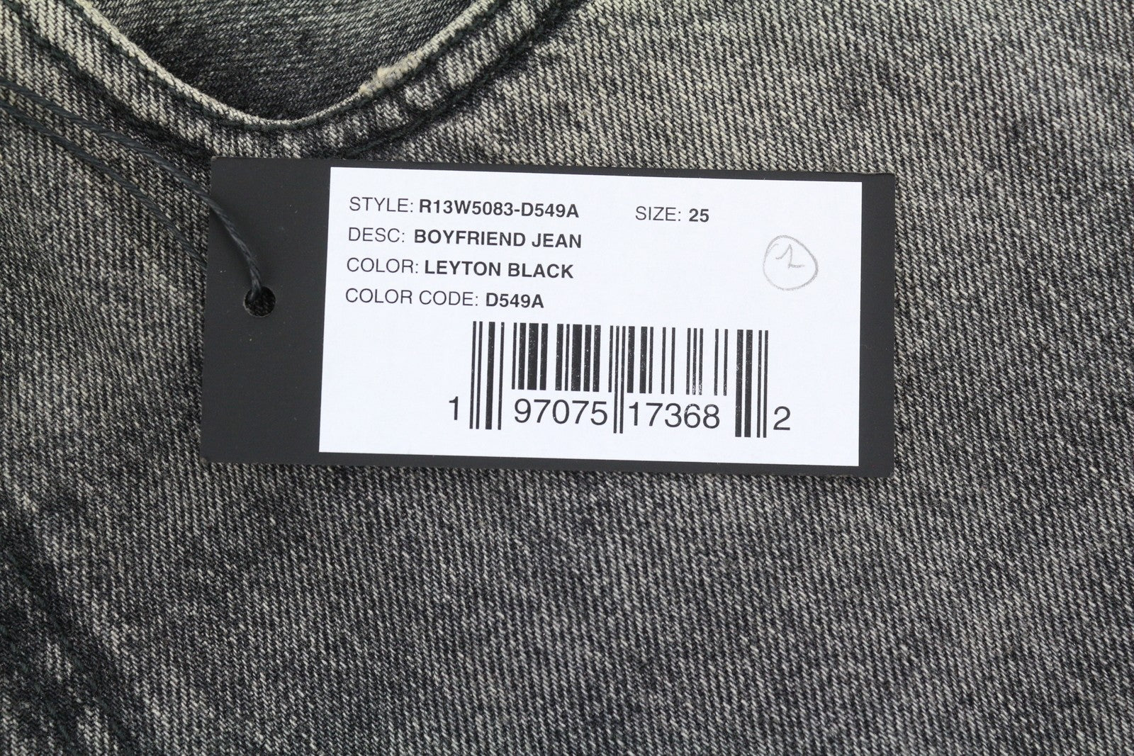 R13 Boyfriend Women Jeans 25 Leyton Black Faded Ankle Cropped Relaxed Fit Denim