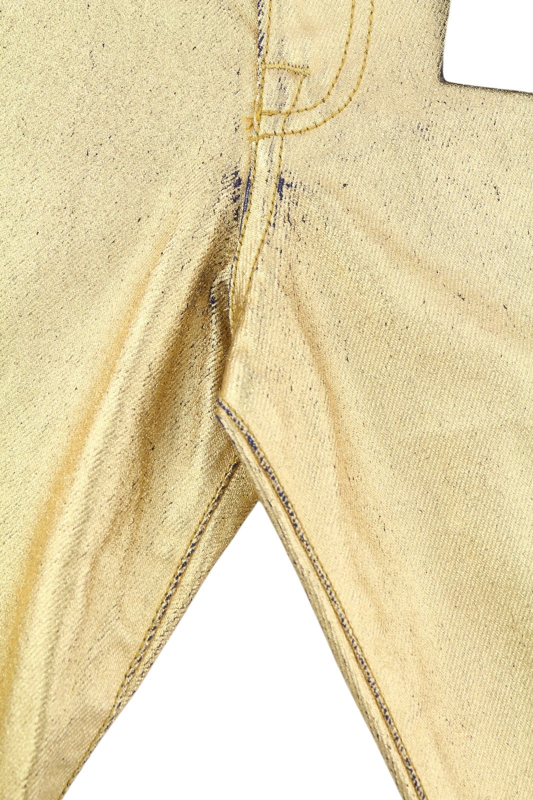 R13 Boyfriend Women Jeans 27 Gold Indigo Shiny Straight Zip Logo Denim