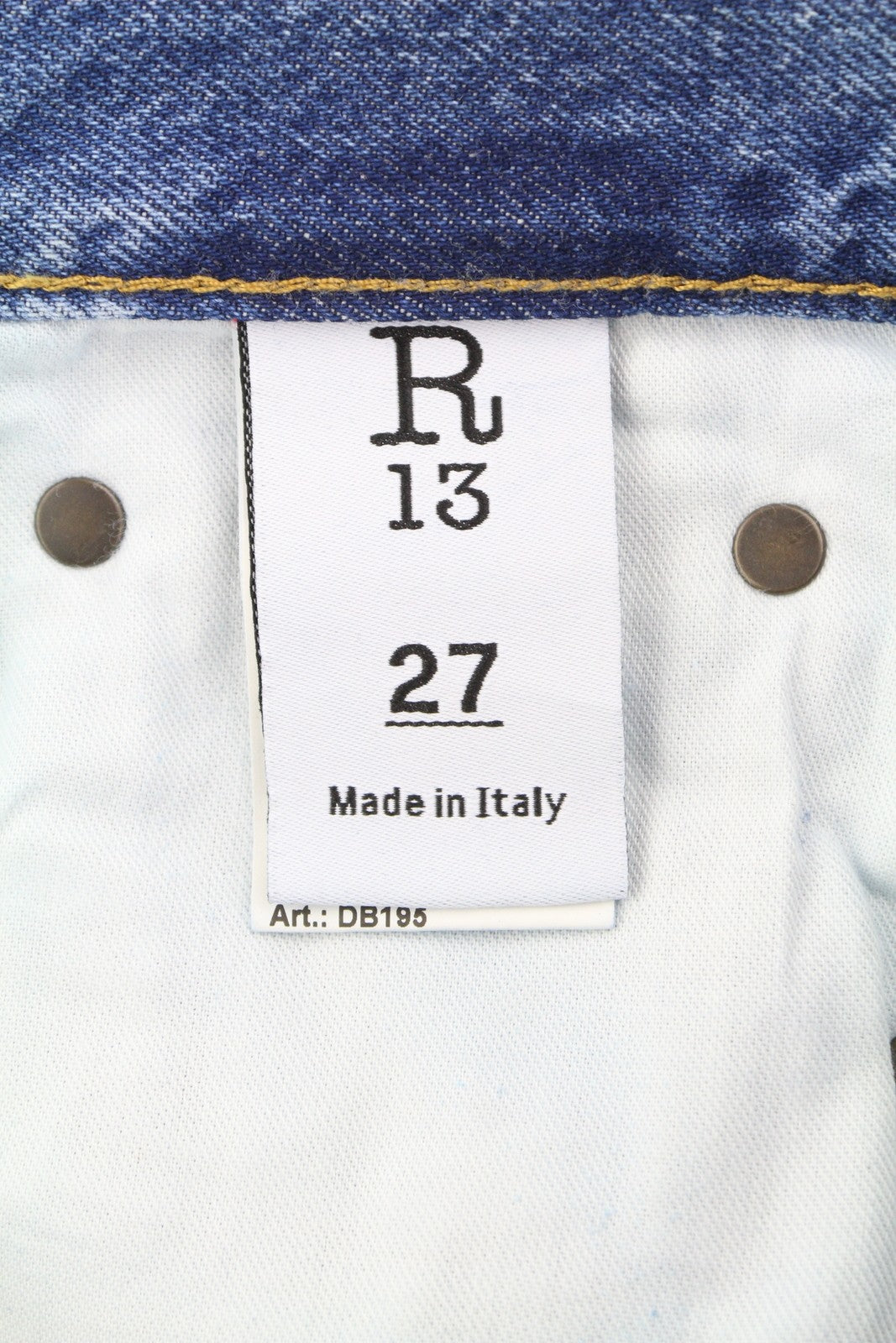 R13 Boyfriend Women Jeans 27 Jasper Cropped Zip Fly Whiskers Faded Blue FW25