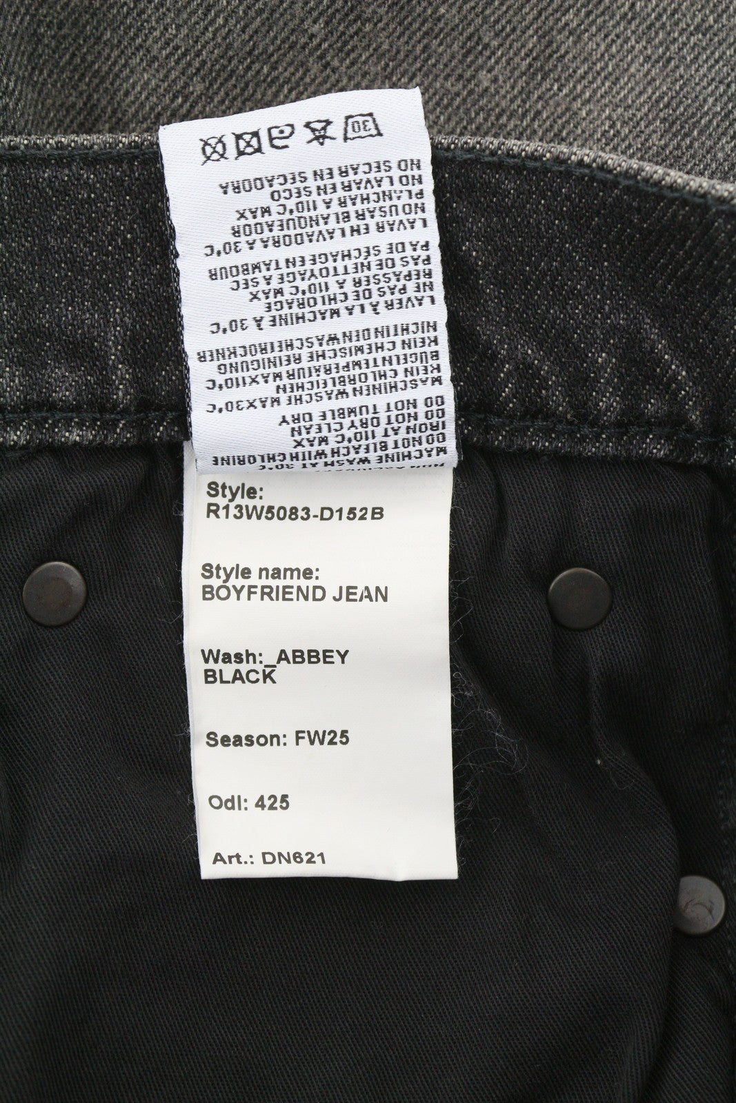 R13 Boyfriend Women Jeans 28 Abbey Black Faded Distress Ripped Straight Fit FW25
