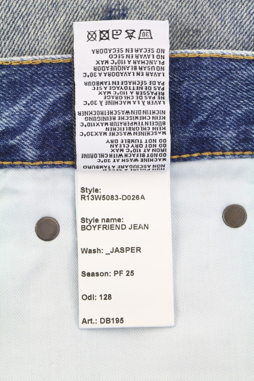 R13 Boyfriend Women Jeans 28 Jasper Whiskers Faded Cropped Zip Blue Denim PF25