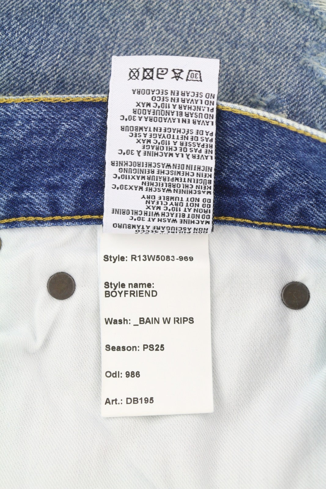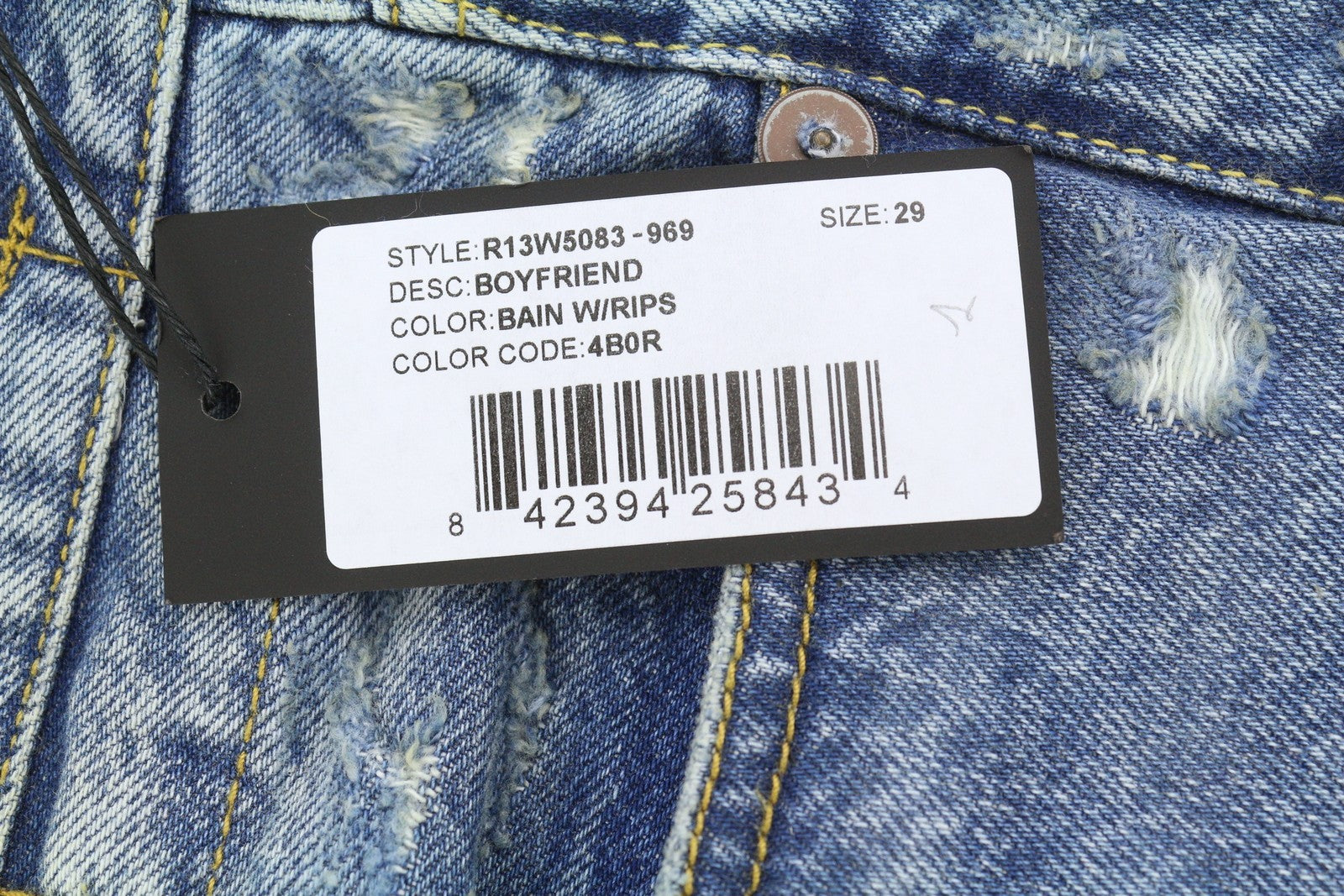 R13 Boyfriend Women Jeans 29 Bain W Rips Distress Faded Ankle PS25 RRP€595