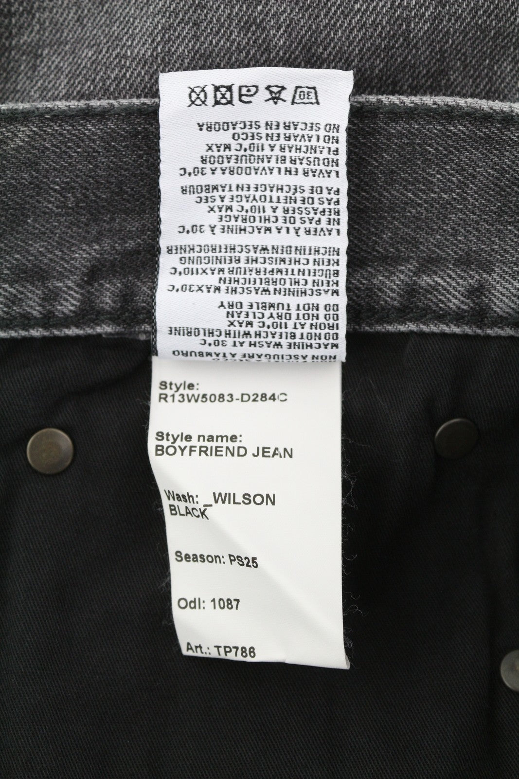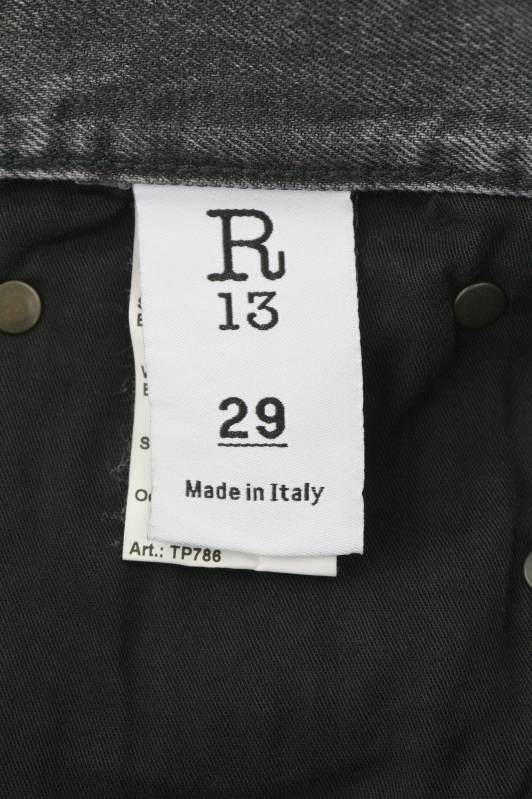 R13 Boyfriend Women Jeans 29 Wilson Black Whiskers Faded Cropped Straight PS25