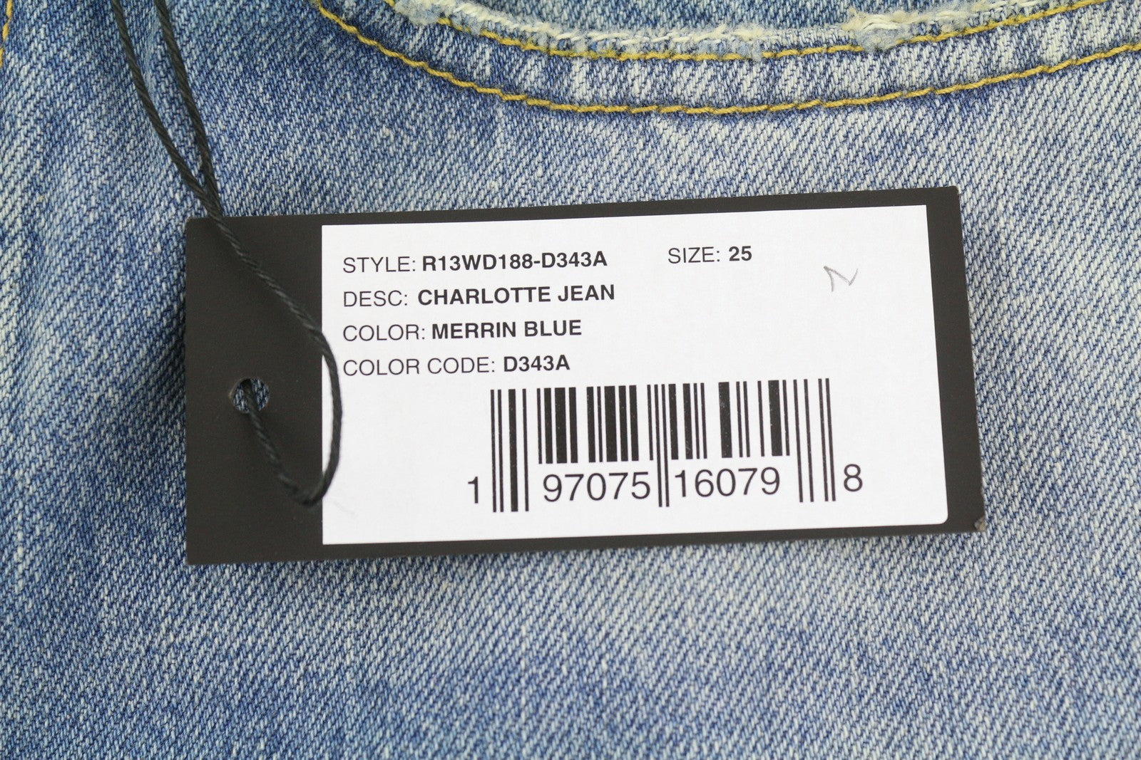 R13 Charlotte Women Jeans 25 Merrin Blue Faded Flared High Rise PF25 RRP795
