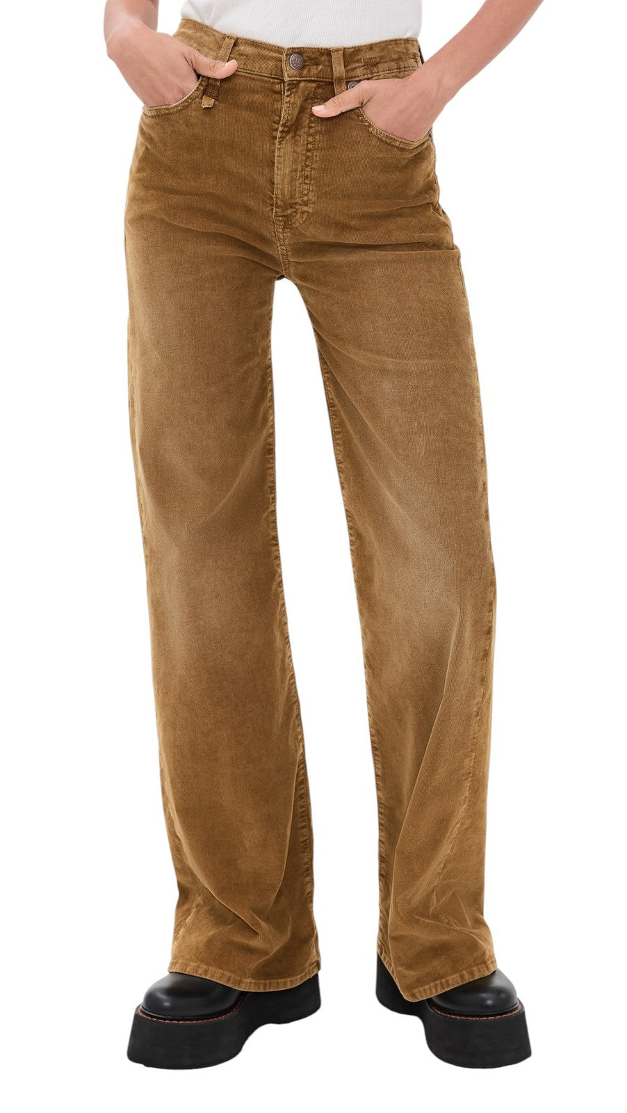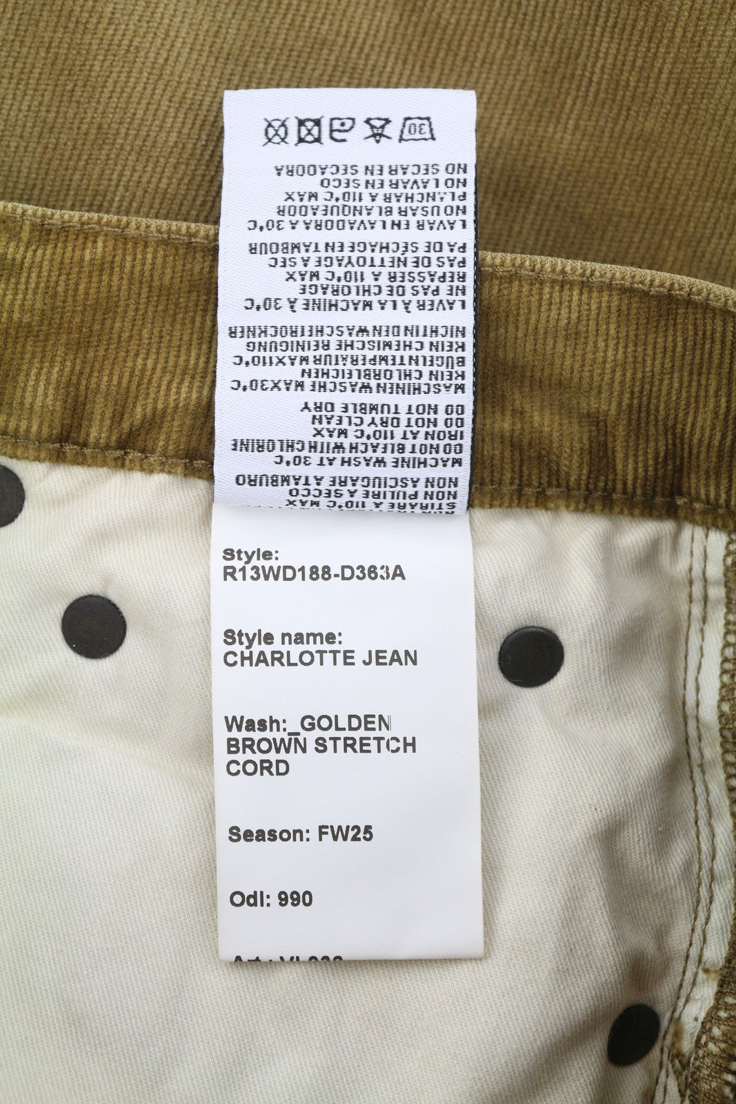 R13 Charlotte Women Trousers 24 Golden Brown Stretch Cord Flared FW25 RRP599