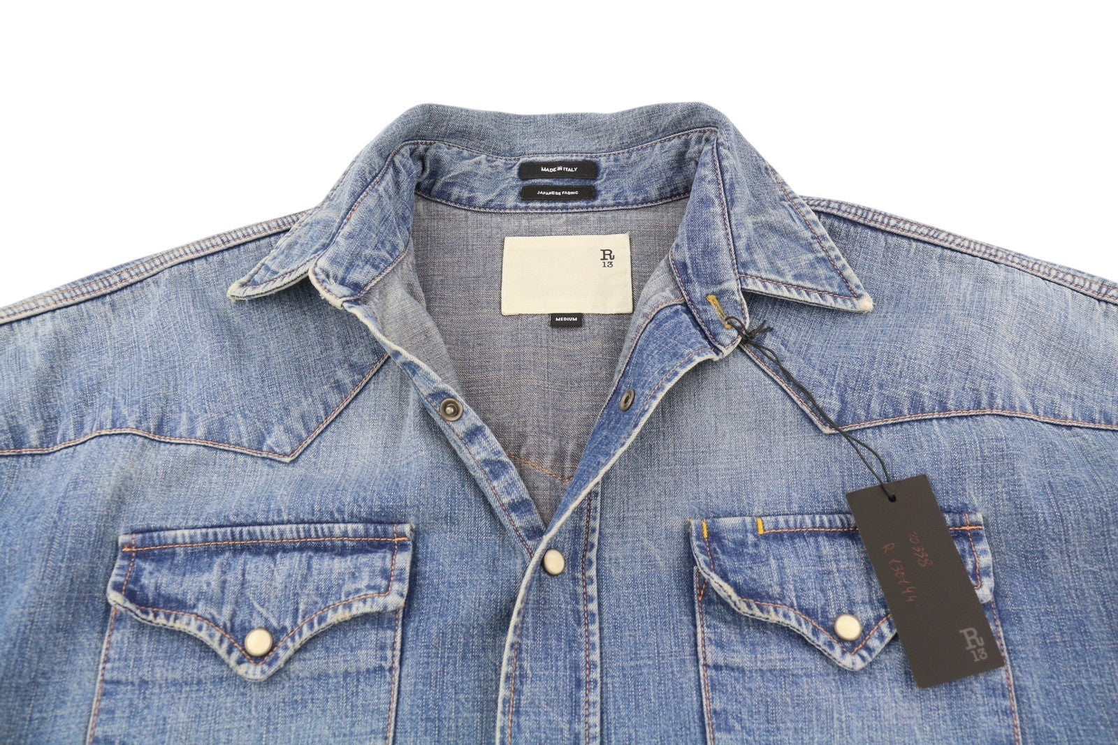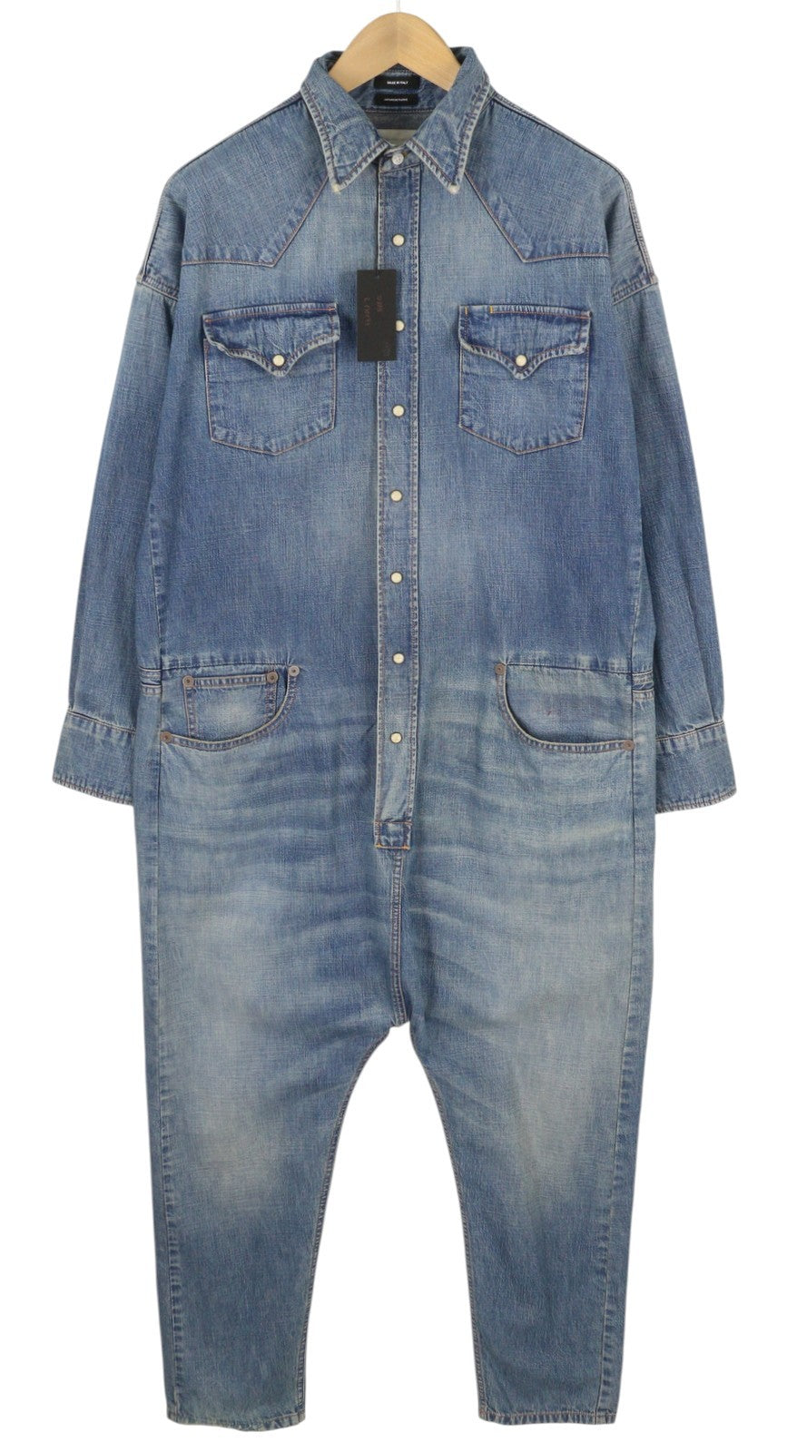 R13 Cowboy Drop Women Jumpsuit M Dekalb Blue Washed Distress Oversized RRP€1699