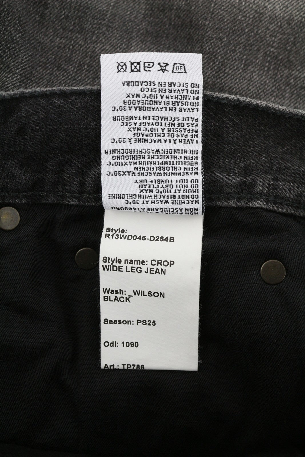 R13 Crop Wide Leg Women Jeans 26 Wilson Black Distress Ankle Washed RRP€695