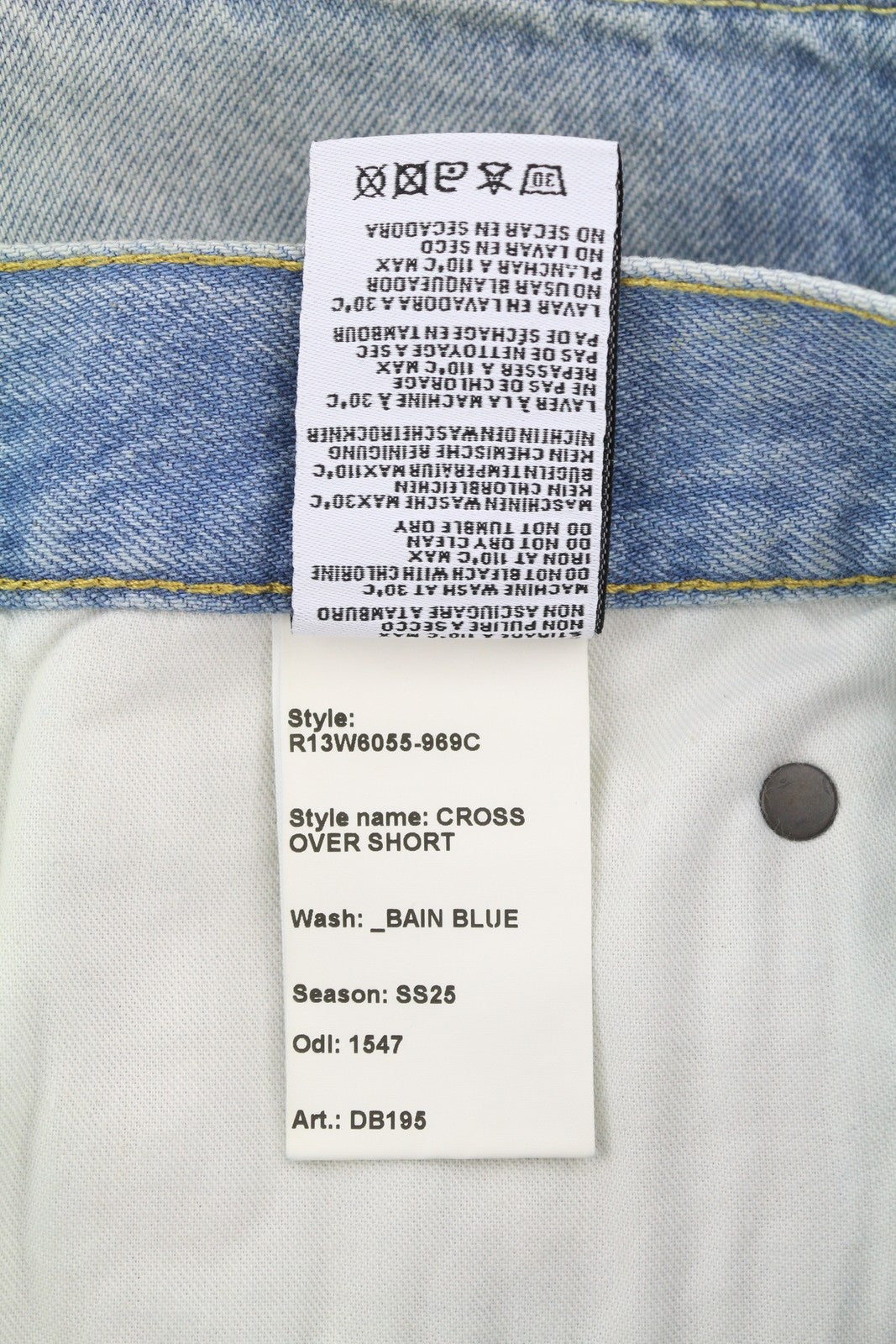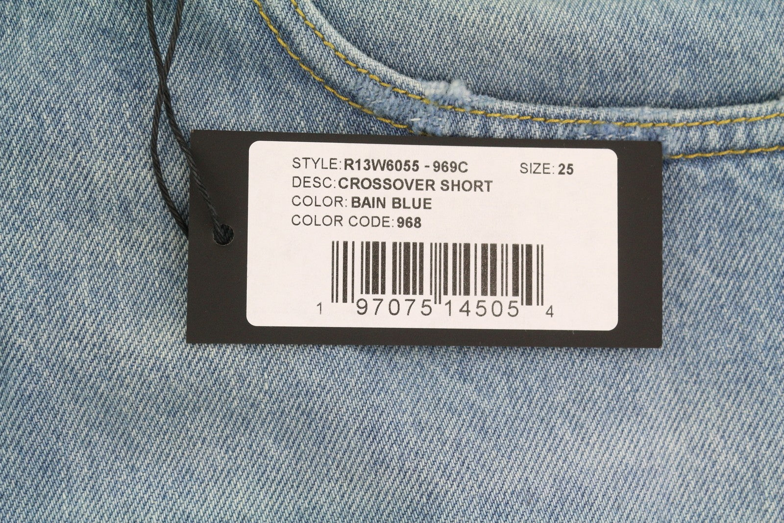 R13 Cross Over Women Shorts 25 Washed Blue Denim Asymmetrical Distress RRP599