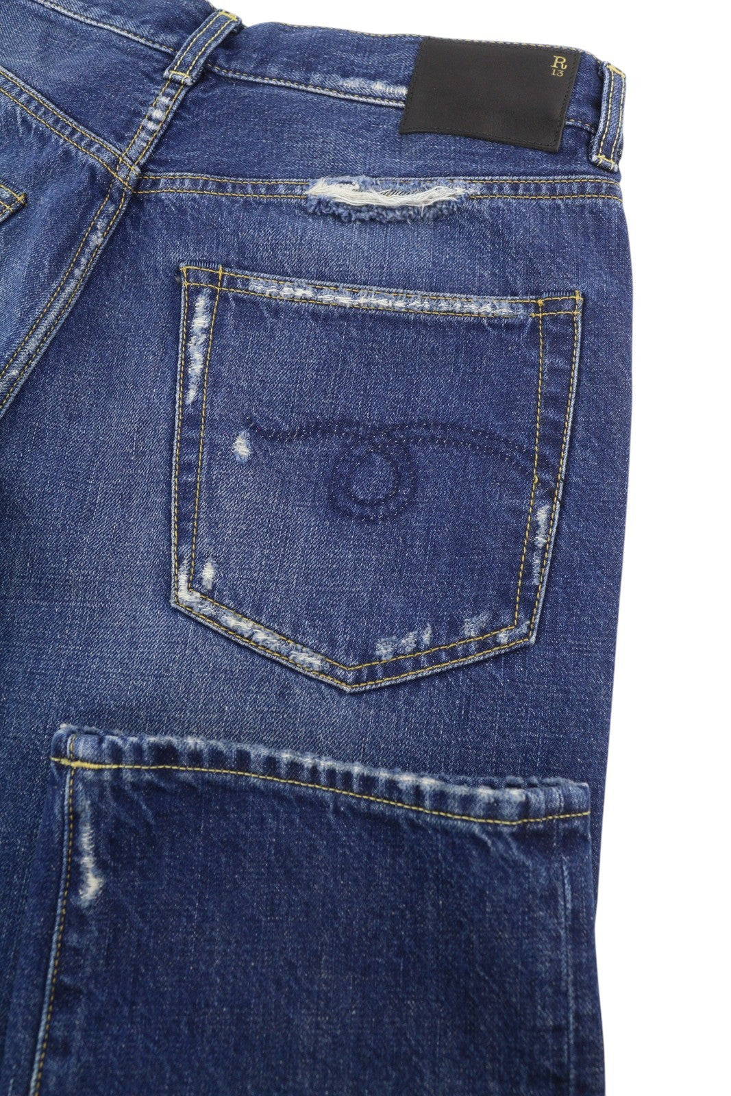 R13 Cuffed Romeo Women Jeans 26 Oasis Blue Whiskers Faded Distressed PS26 RPP645