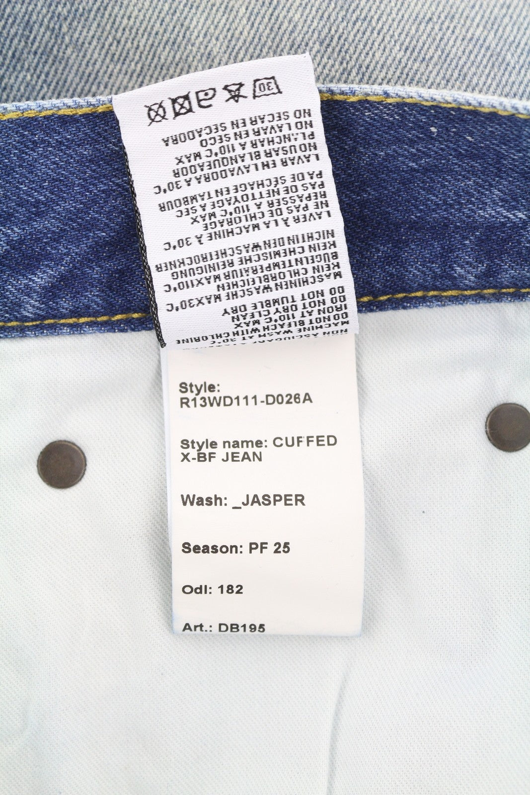 R13 Cuffed X-BF Women Jeans 27 Jasper Straight Fit Faded Blue Zip Fly Denim PF25