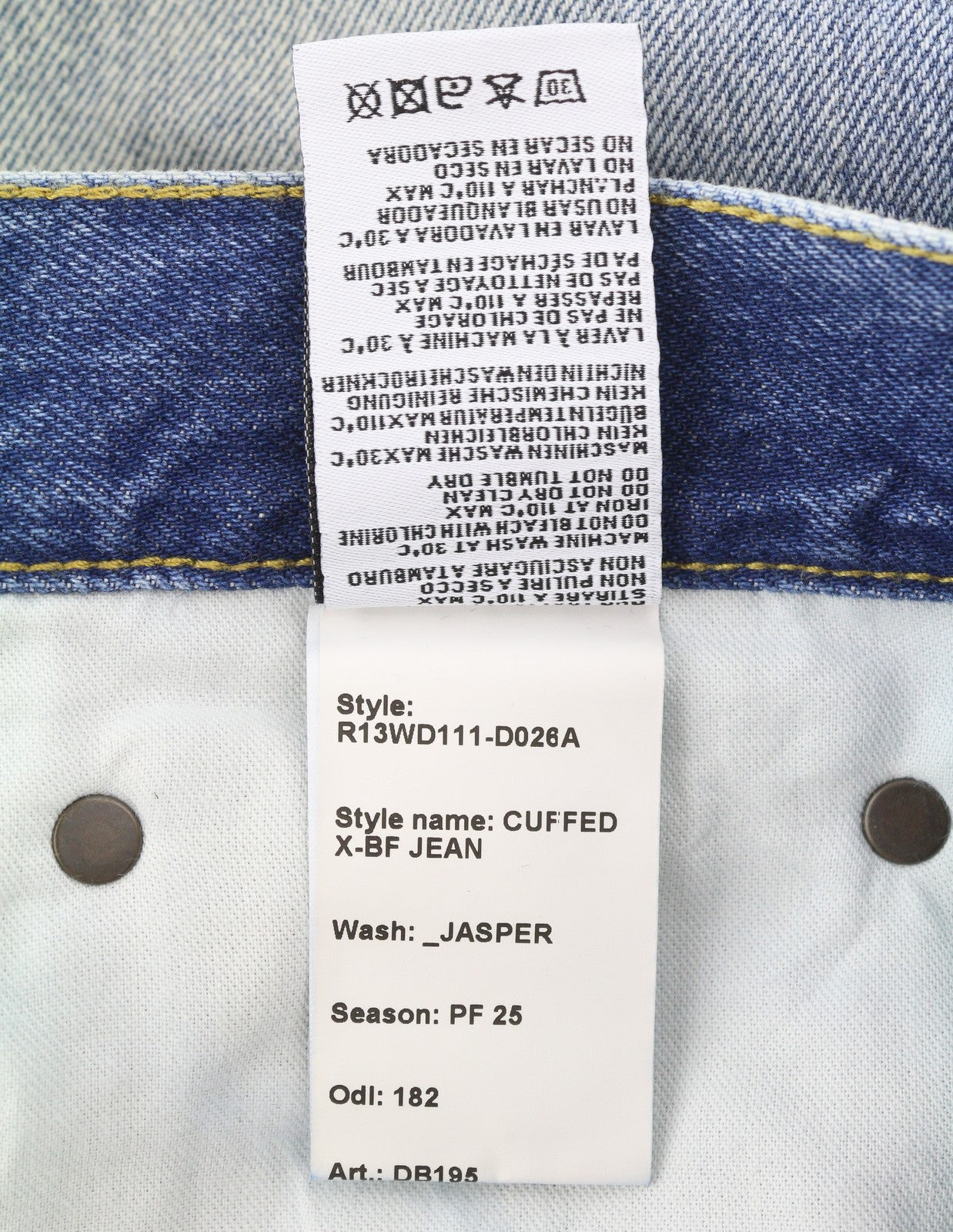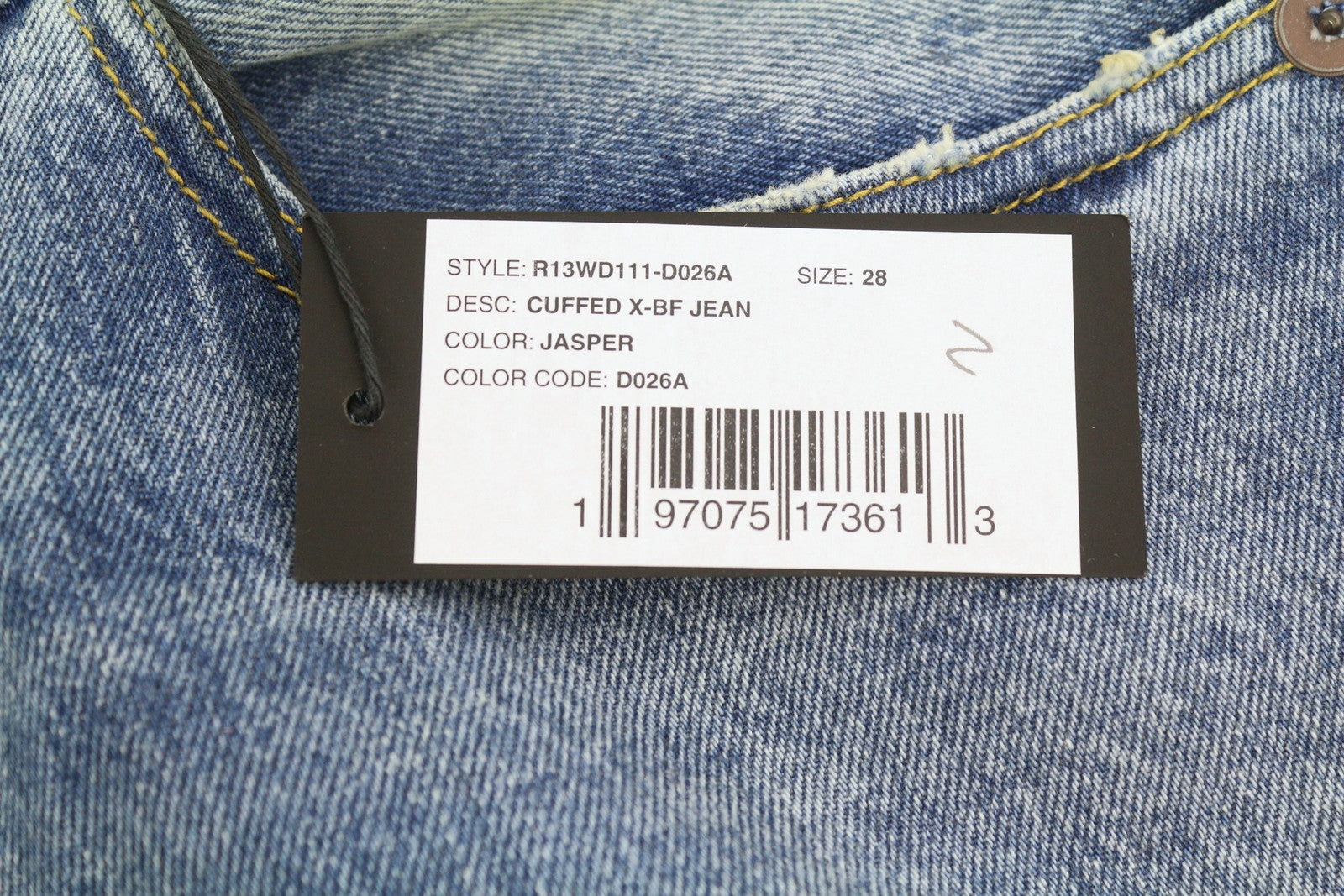 R13 Cuffed X-BF Women Jeans 28 Jasper Straight Fit Whiskers Faded Denim PF25