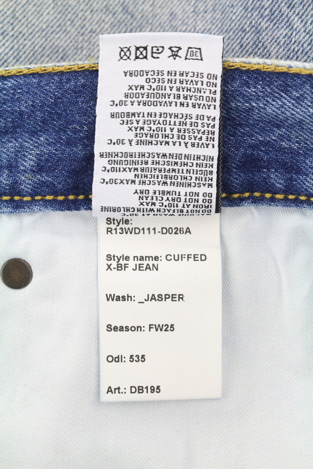 R13 Cuffed X-BF Women Jeans 30 Jasper Straight Fit Faded Blue Zip Fly Denim FW25