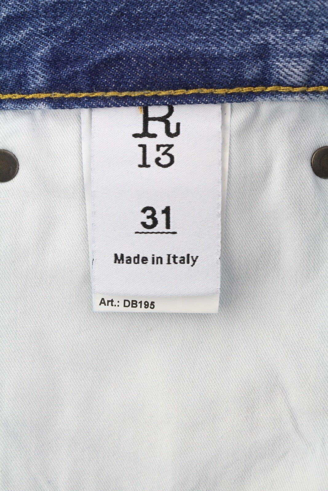 R13 Cuffed X-BF Women Jeans 31 Jasper Straight Leg Whiskers Faded Blue Zip FW25