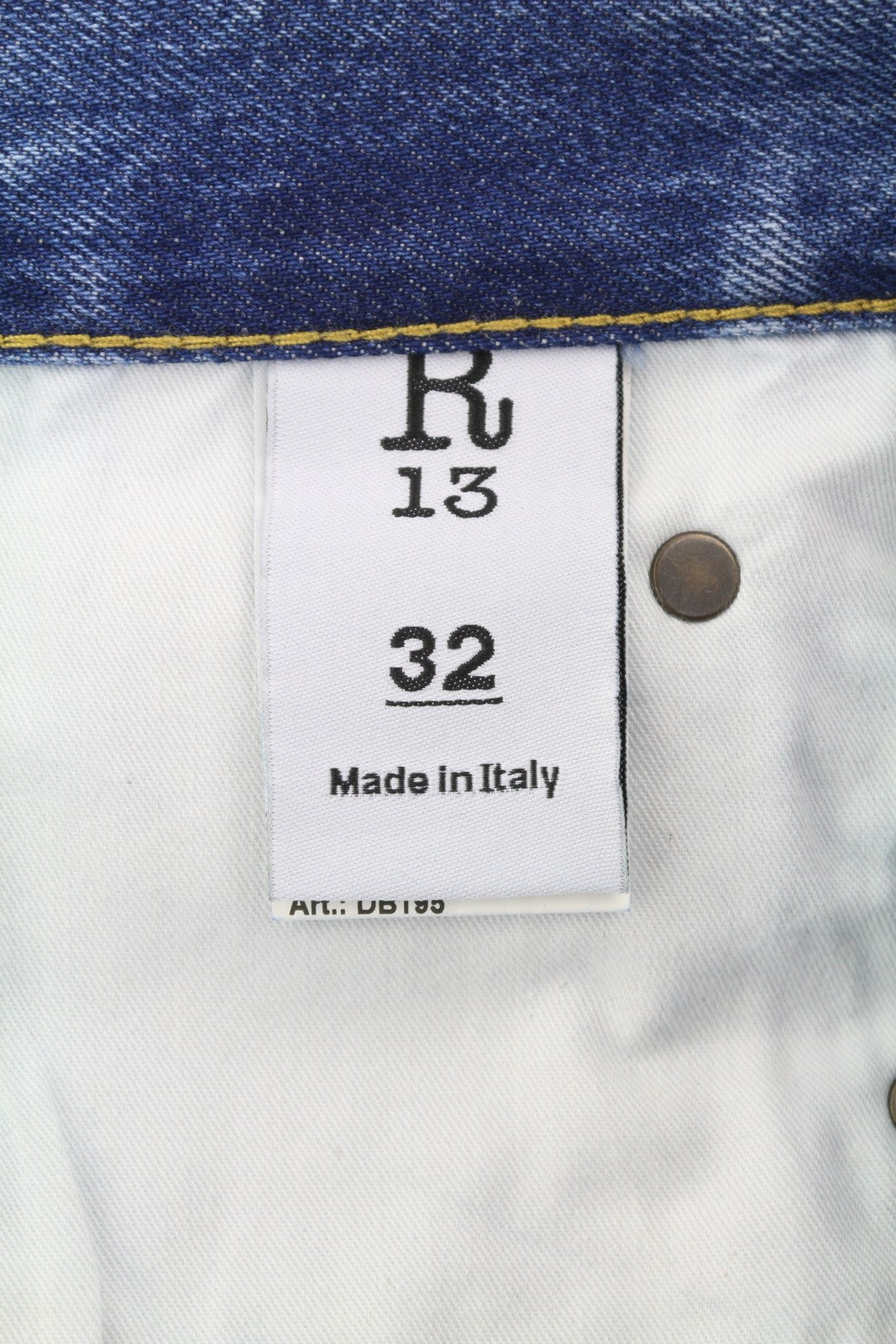 R13 Cuffed X-BF Women Jeans 32 Jasper Straight Whiskers Faded Blue Zip FW25