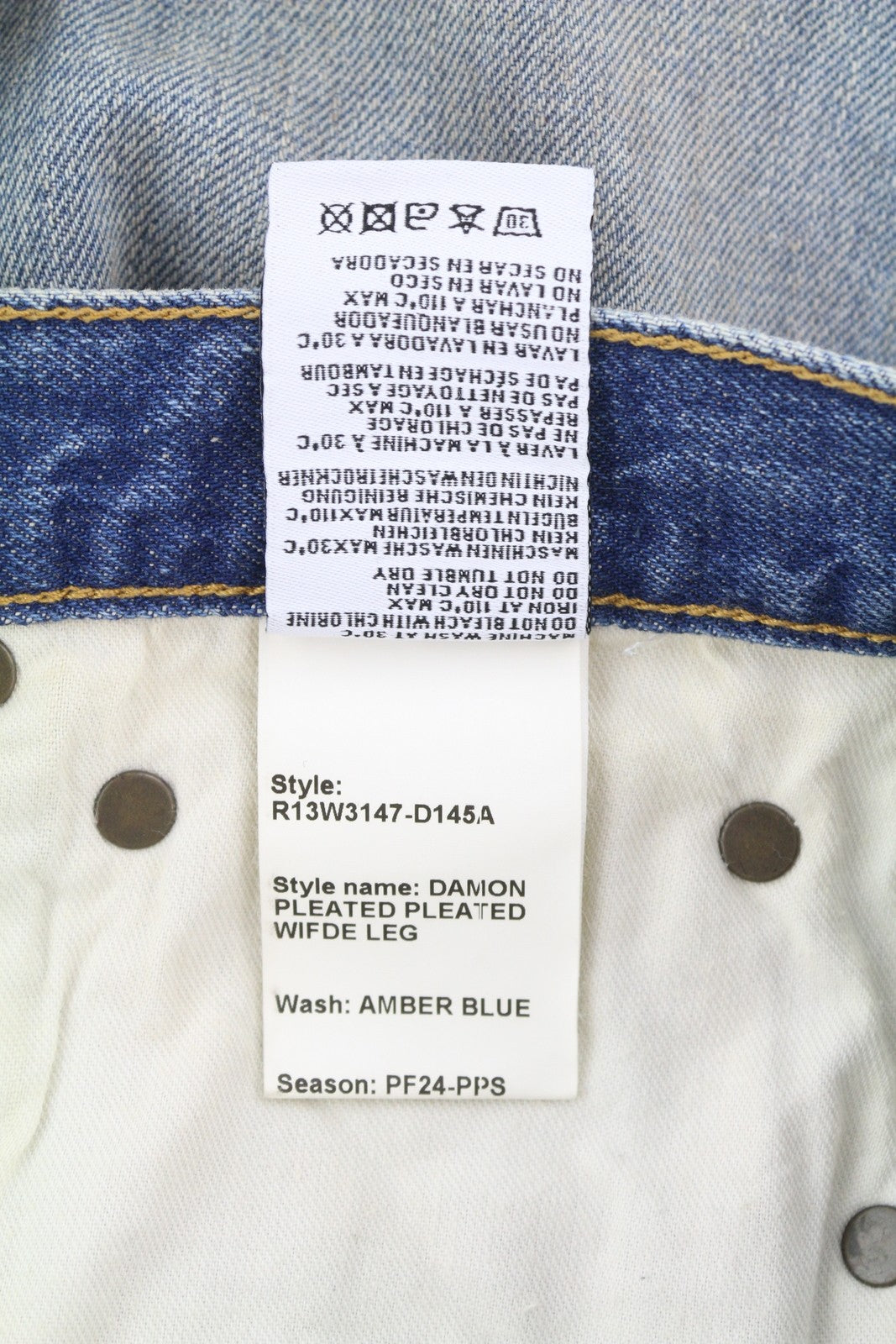 R13 Damon Pleated Wide Leg Women Jeans 27 Amber Blue Faded Dirty Look Denim