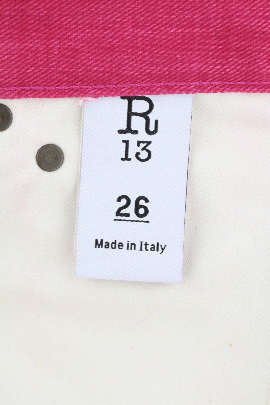 R13 Damon Pleated Women Jeans 26 Vivid Pink Wide Leg Zip Fly Five-Pockets Denim