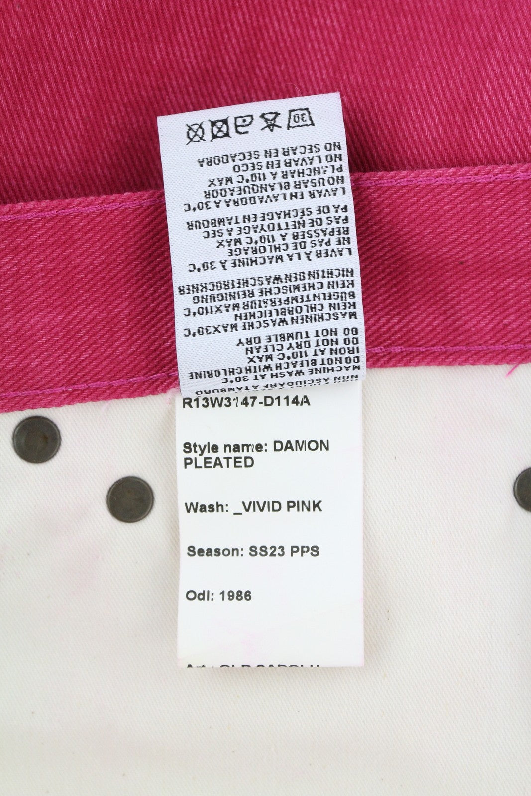 R13 Damon Pleated Women Jeans 26 Vivid Pink Wide Leg Zip Pocket Denim