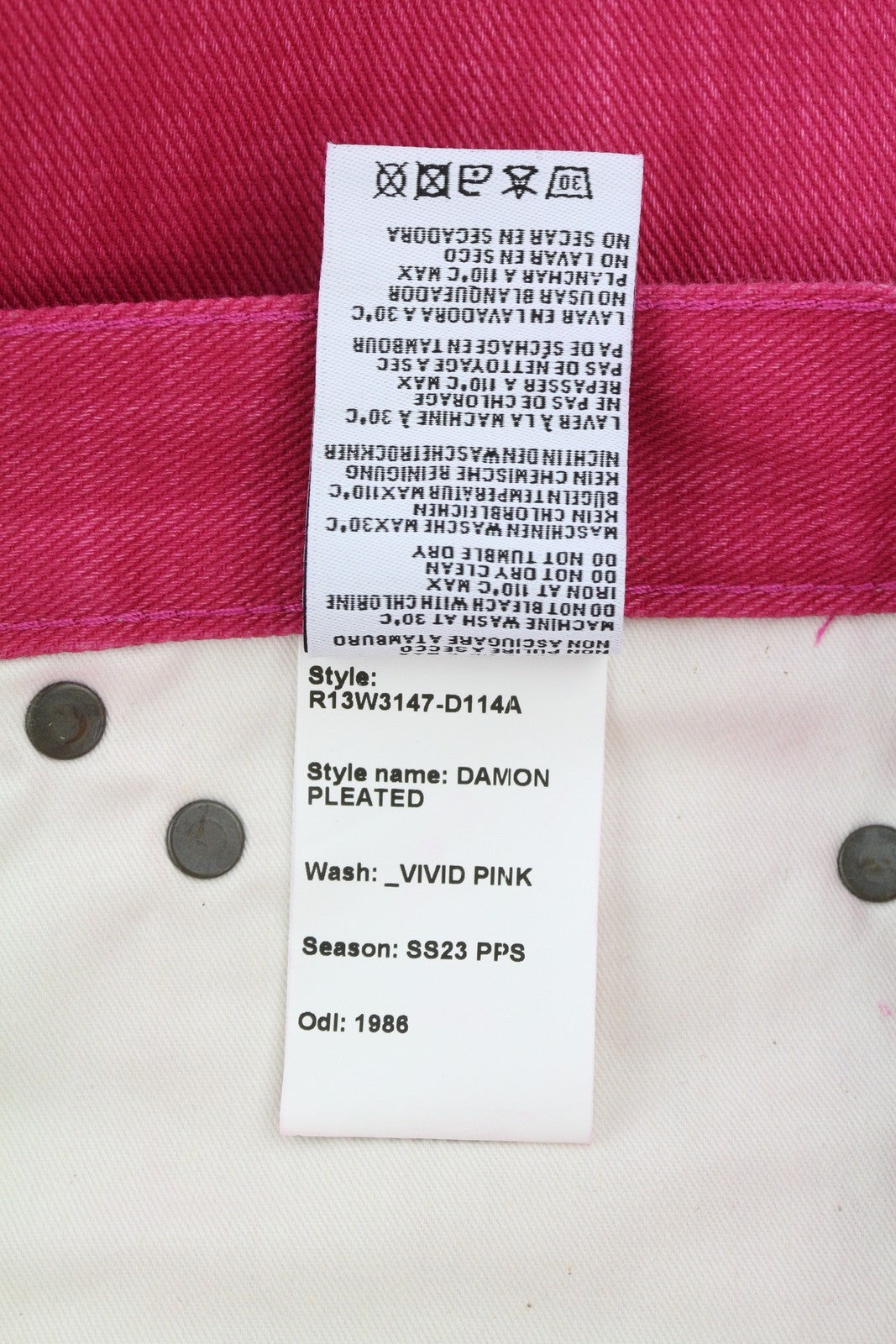 R13 Damon Pleated Women Jeans 27 Vivid Pink Wide Leg Zip Fly Five-Pockets Denim