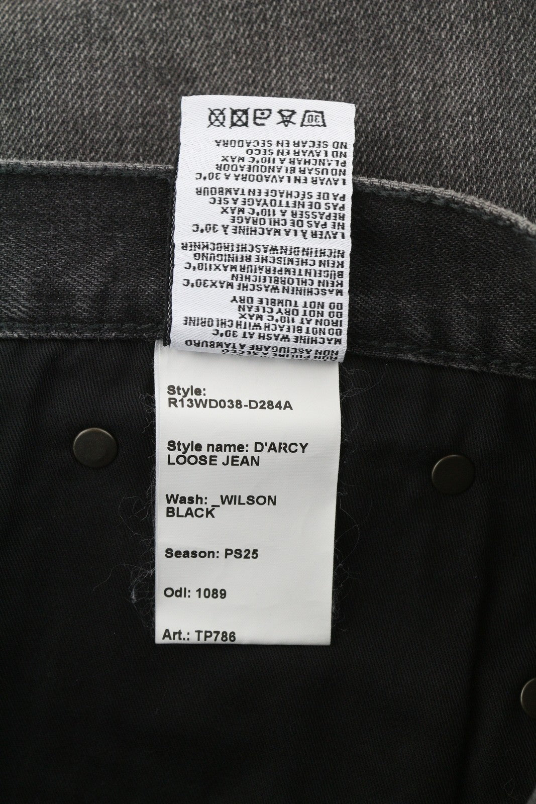 R13 D'Arcy Loose Women Jeans 27 Wilson Black Faded Relaxed Denim RRP700