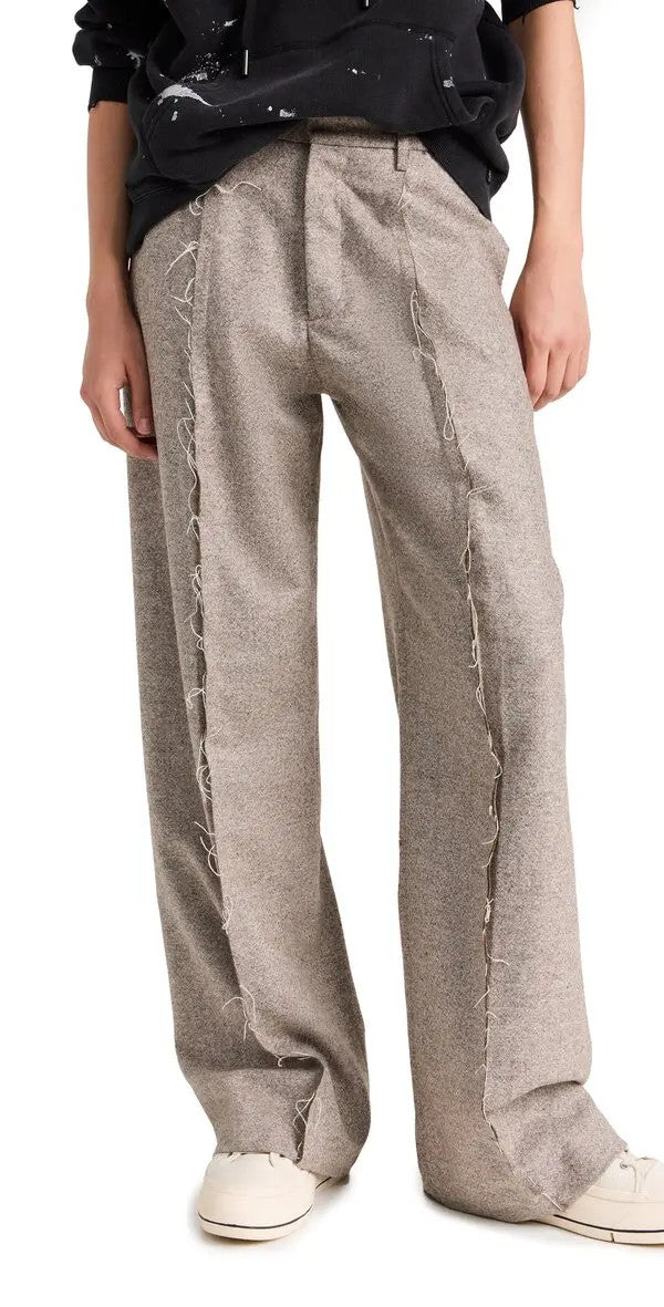 R13 Expored Seam Women Trousers 27 Melange Beige Wool Flared Leg Button RRP799