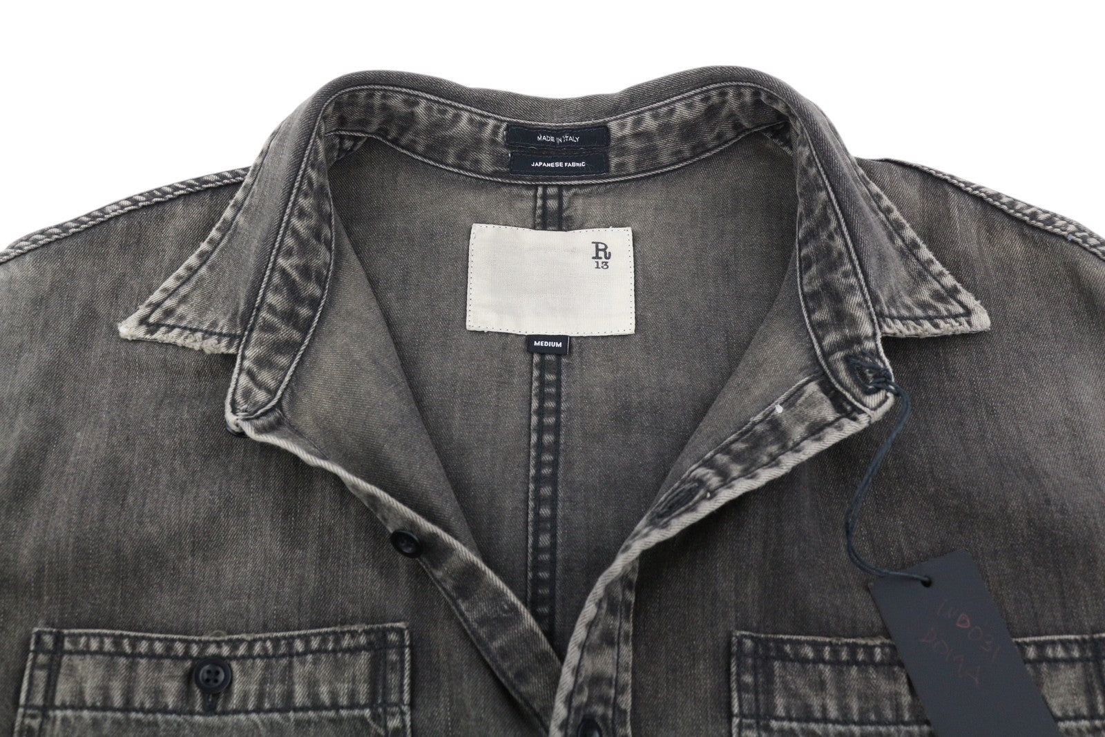 R13 Freddy Cowboy Shirt Women Romper M Elmore Black Distressed Tex RRP799